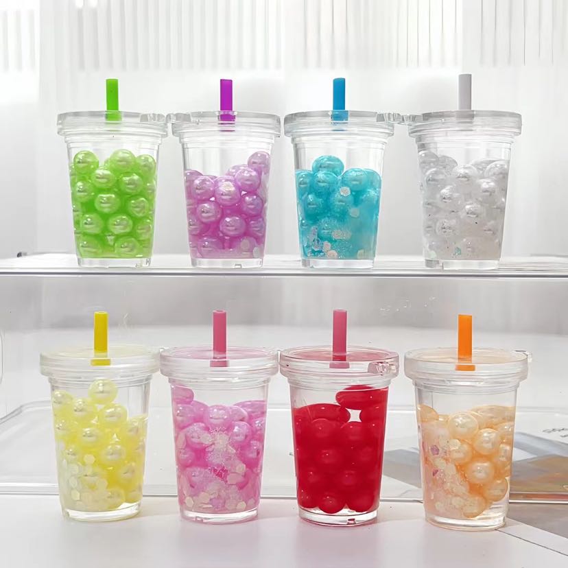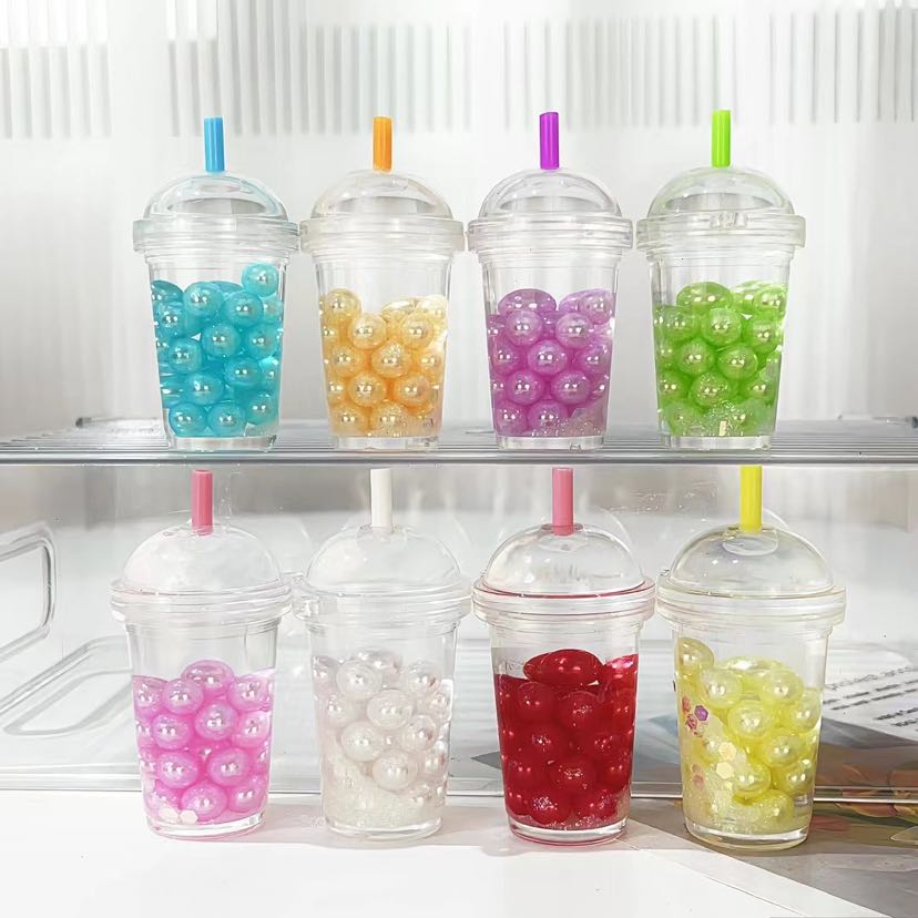 pearl cartoon oil quicksand keychain milky tea cup astronaut students' school bag pendant key chain activity 中文版