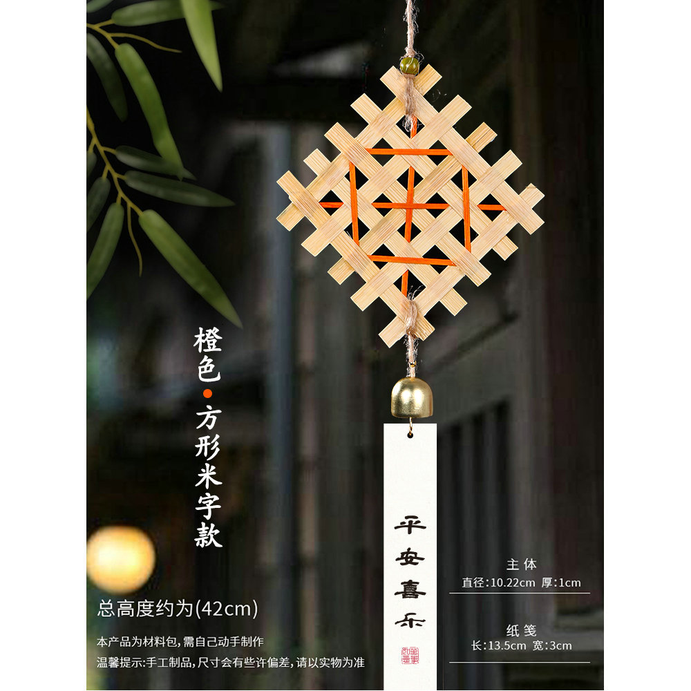 [orange heart ruyi✨bag with the 米 pattern] wind chime material package + [bamboo plate] hanging card