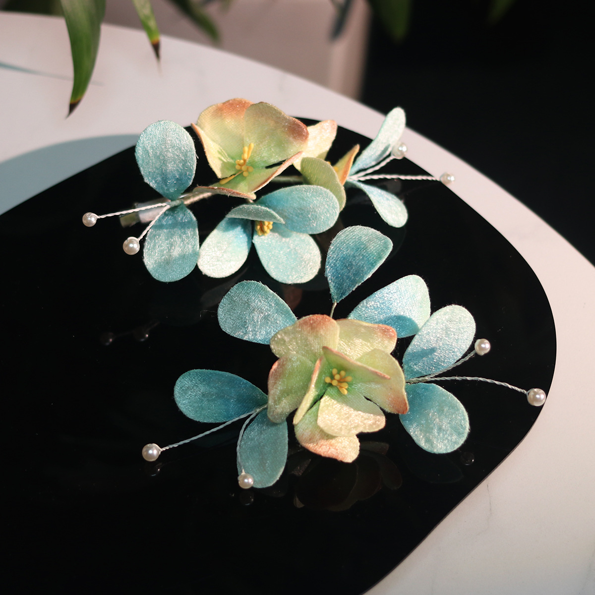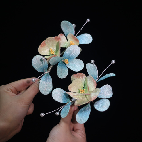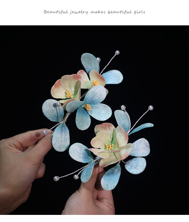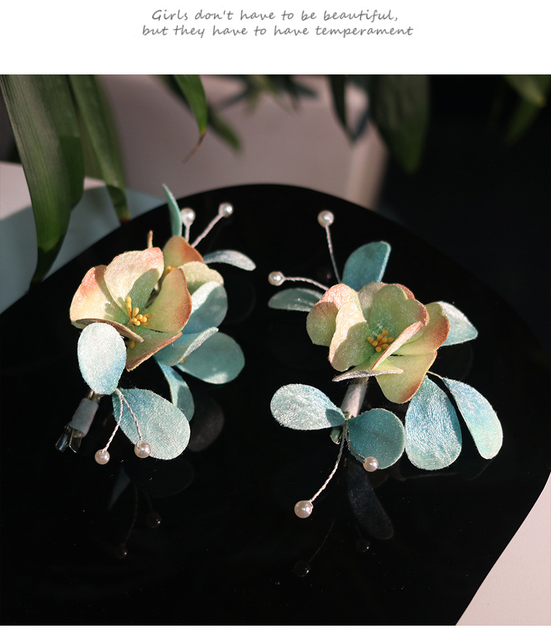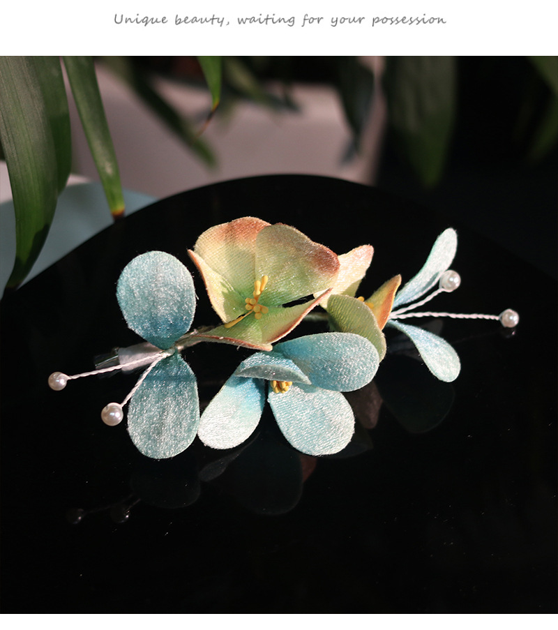 blue velvet flower barrettes pairs