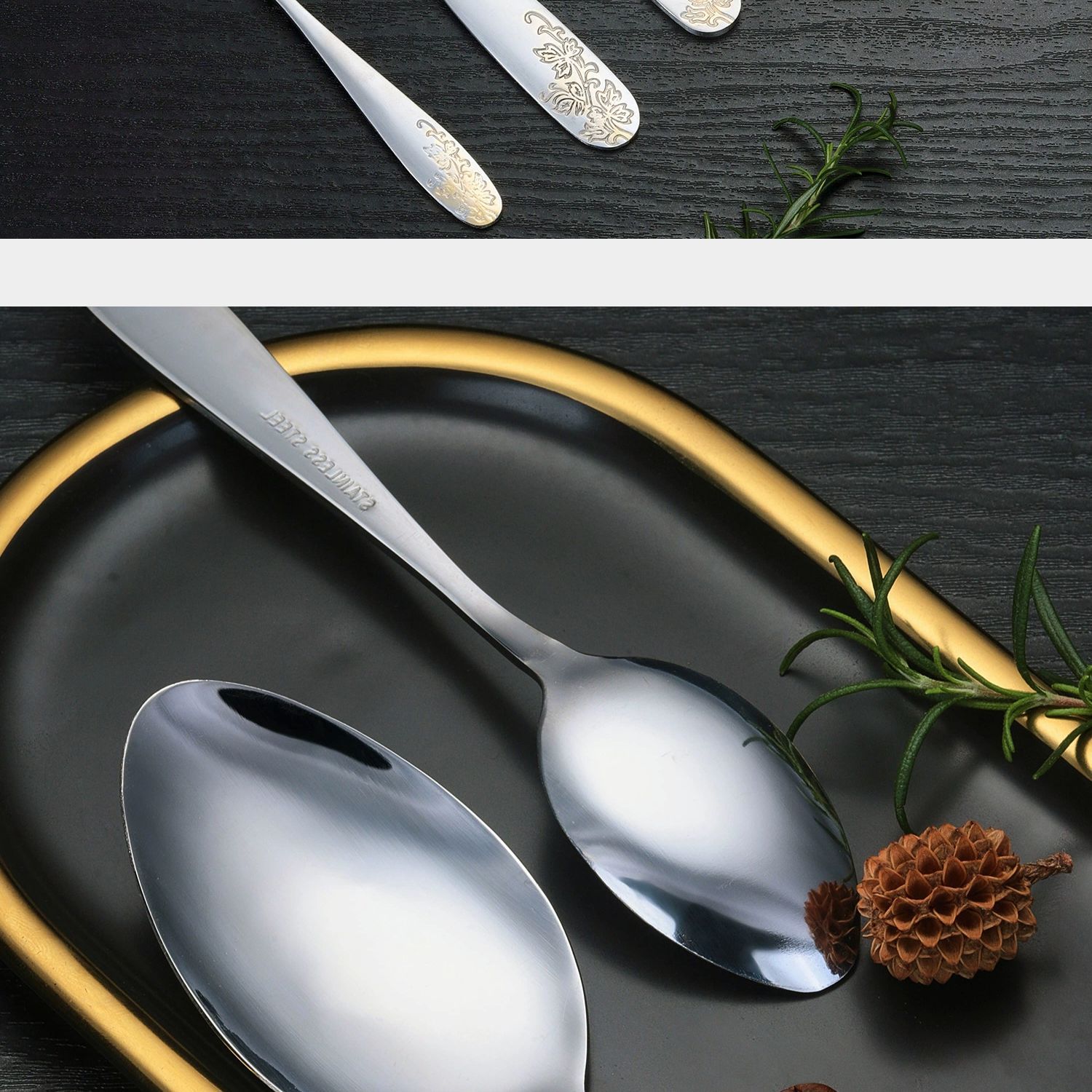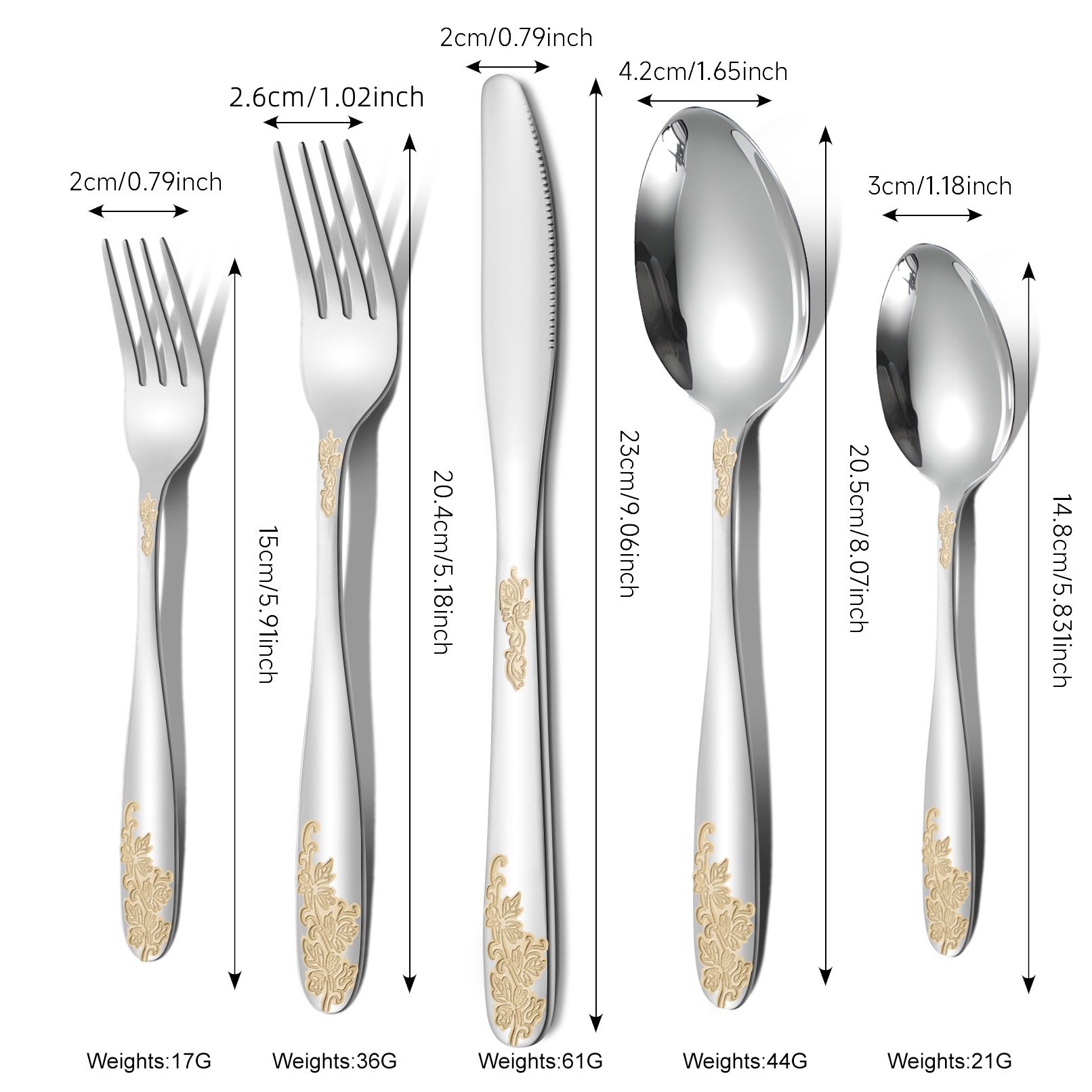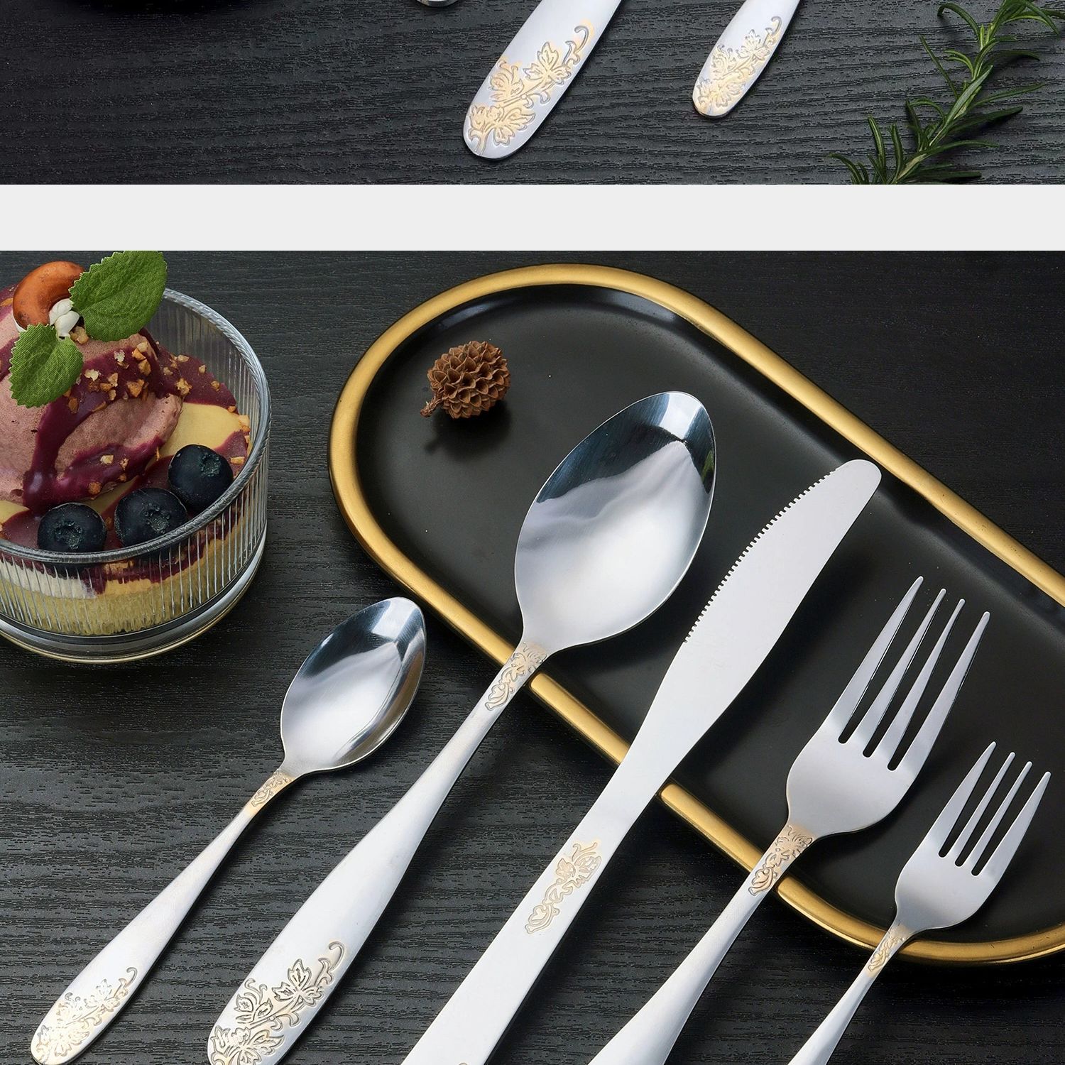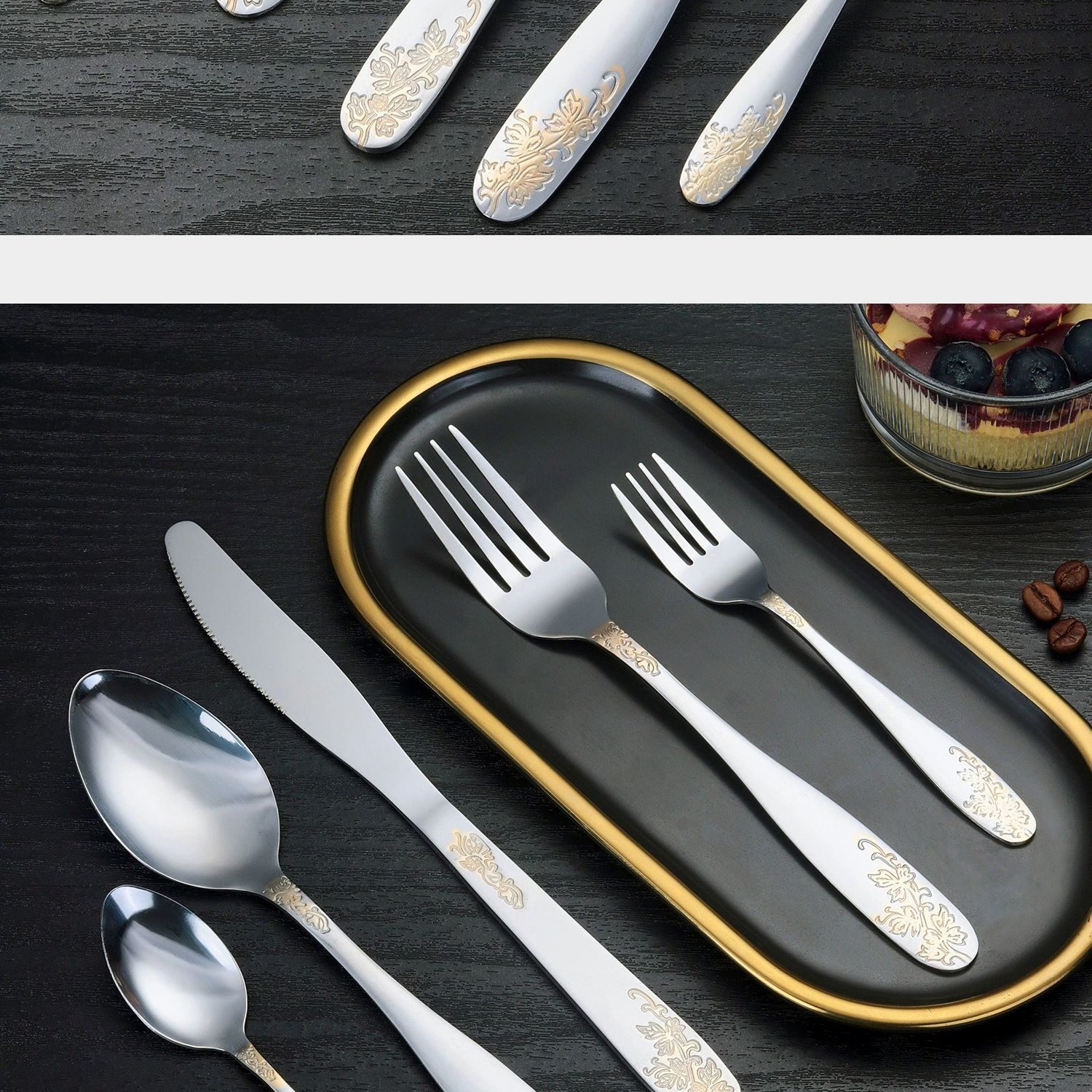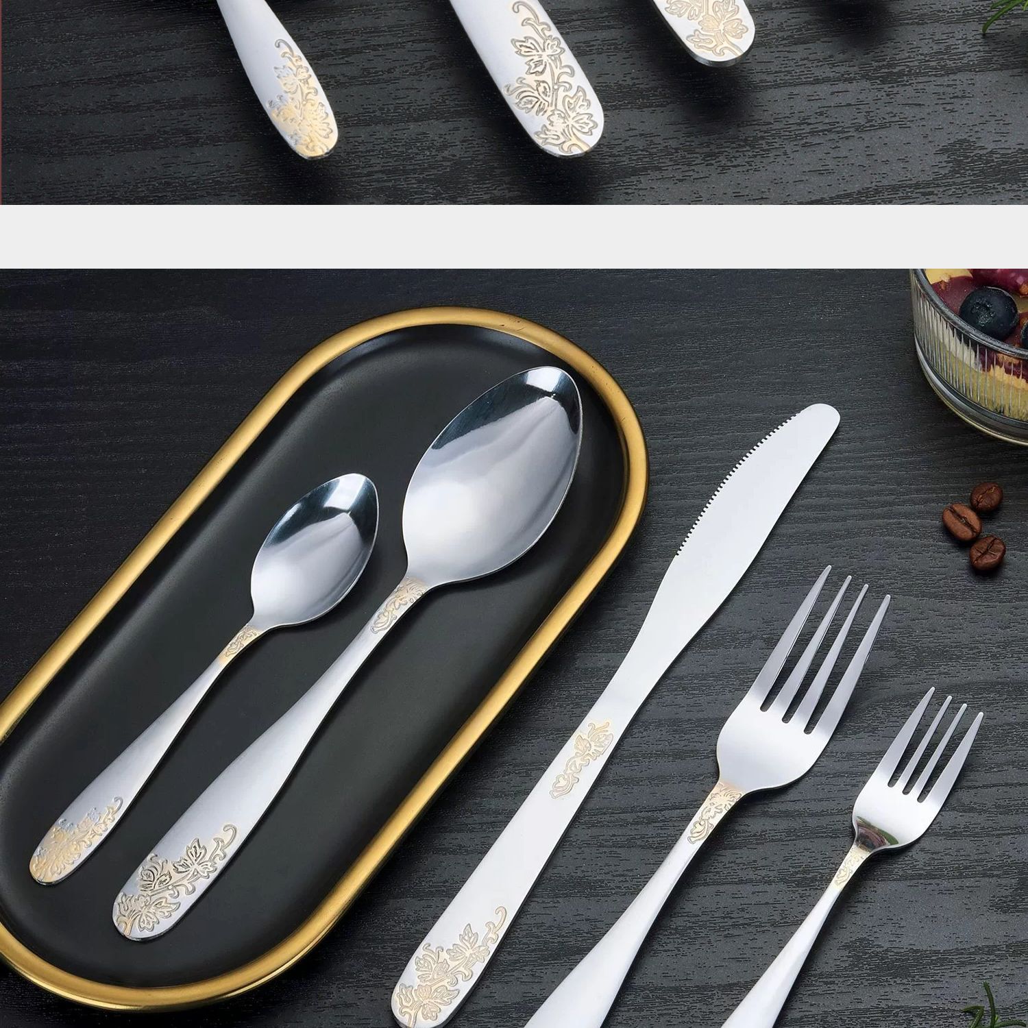 [relief flower and leaf] 410 stainless steel tableware light luxury gold-plated western food knife, fork and spoon suit relief pattern