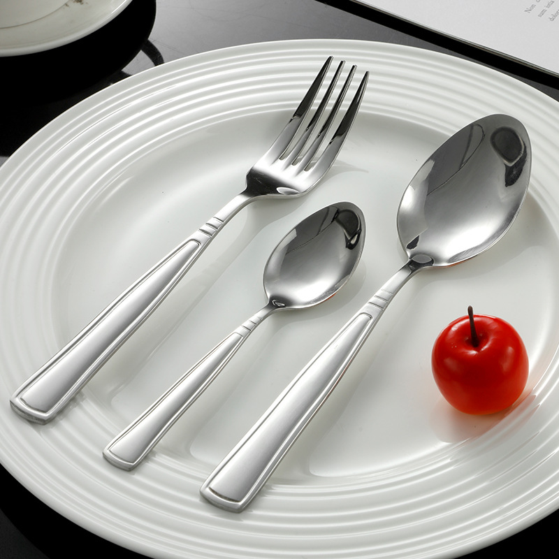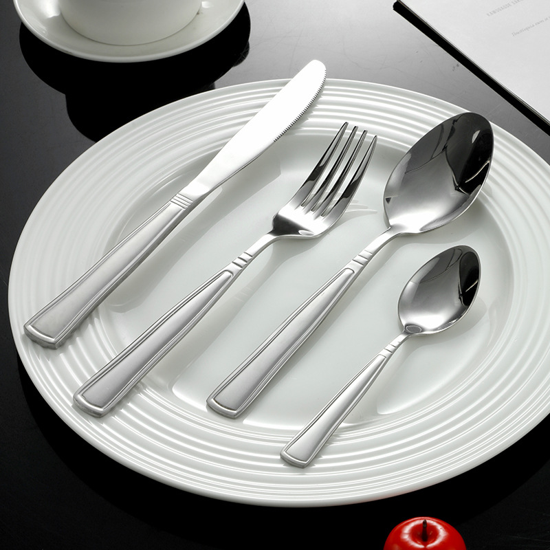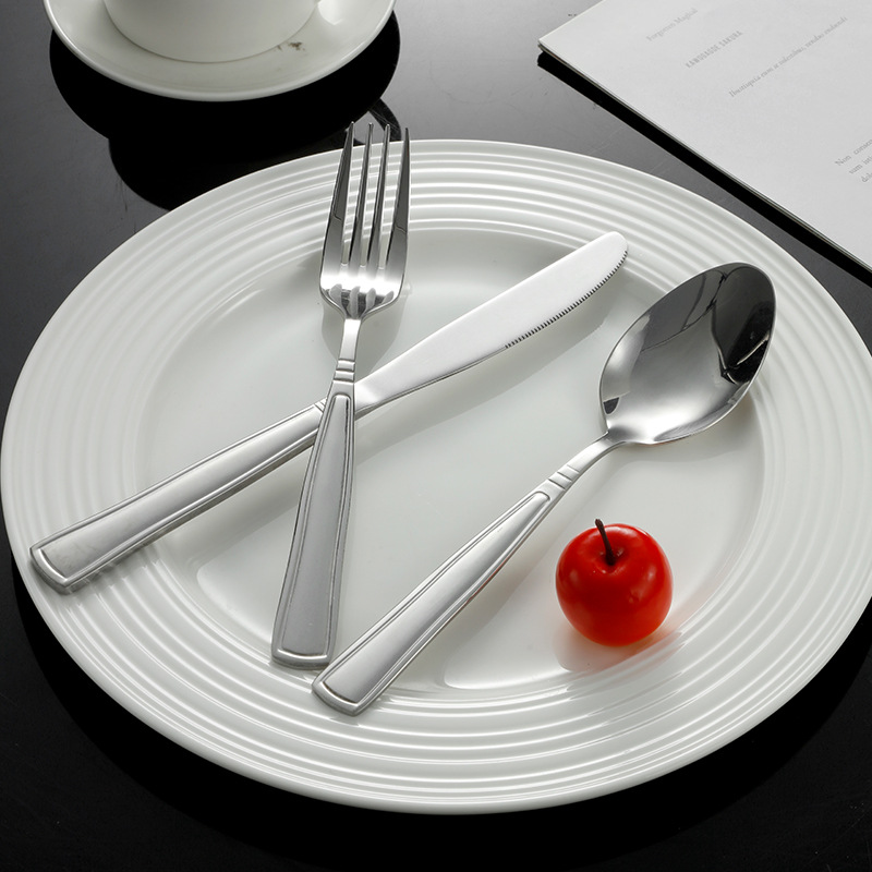 [dynasty] 410 stainless steel simple advanced european natural color partial gold plated knife, fork and spoon western food set
