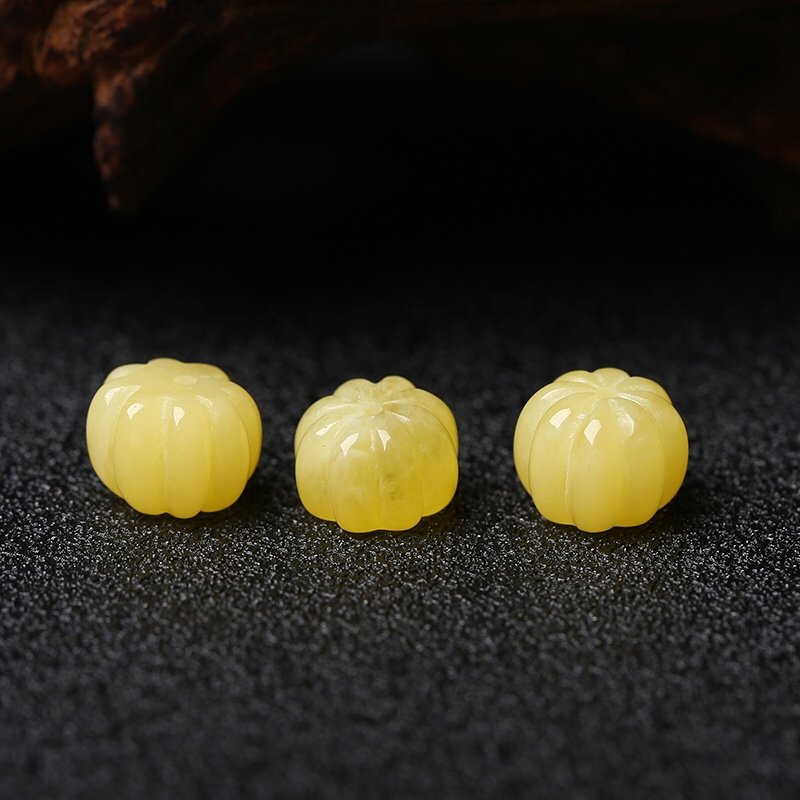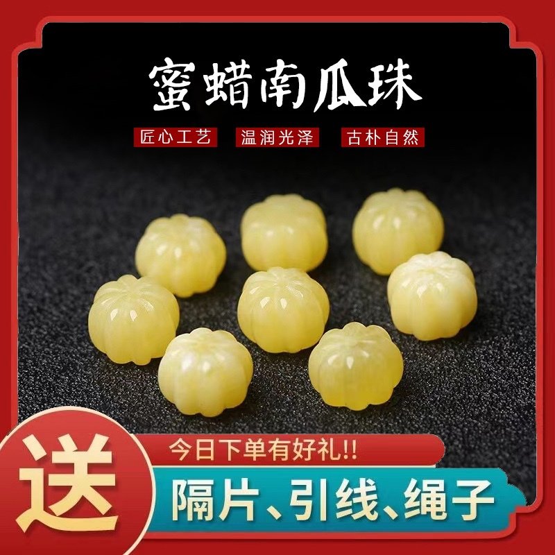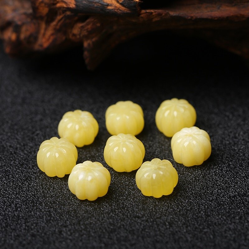 natural raw ore beeswax carved pumpkin beads scattered beads waist bead bracelet diy accessories ornaments full of wax yellow chicken grease 中文版