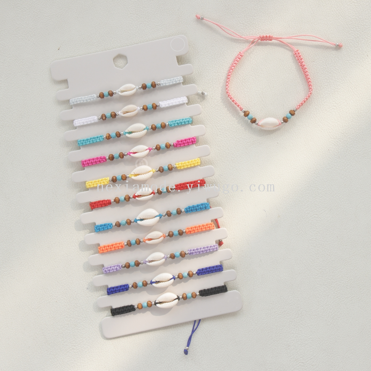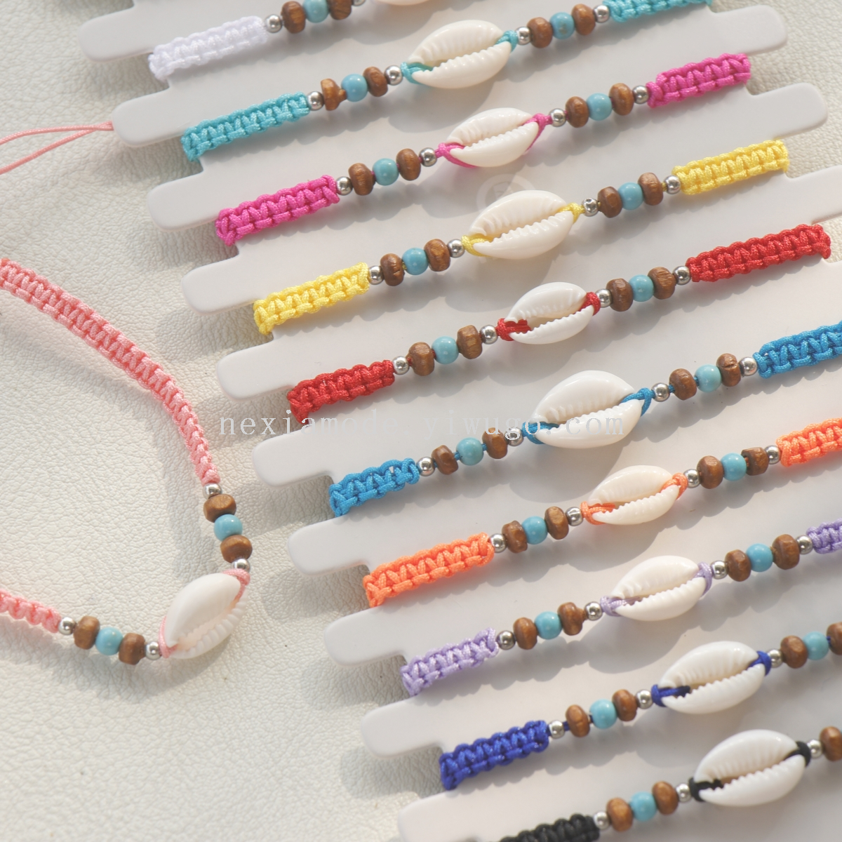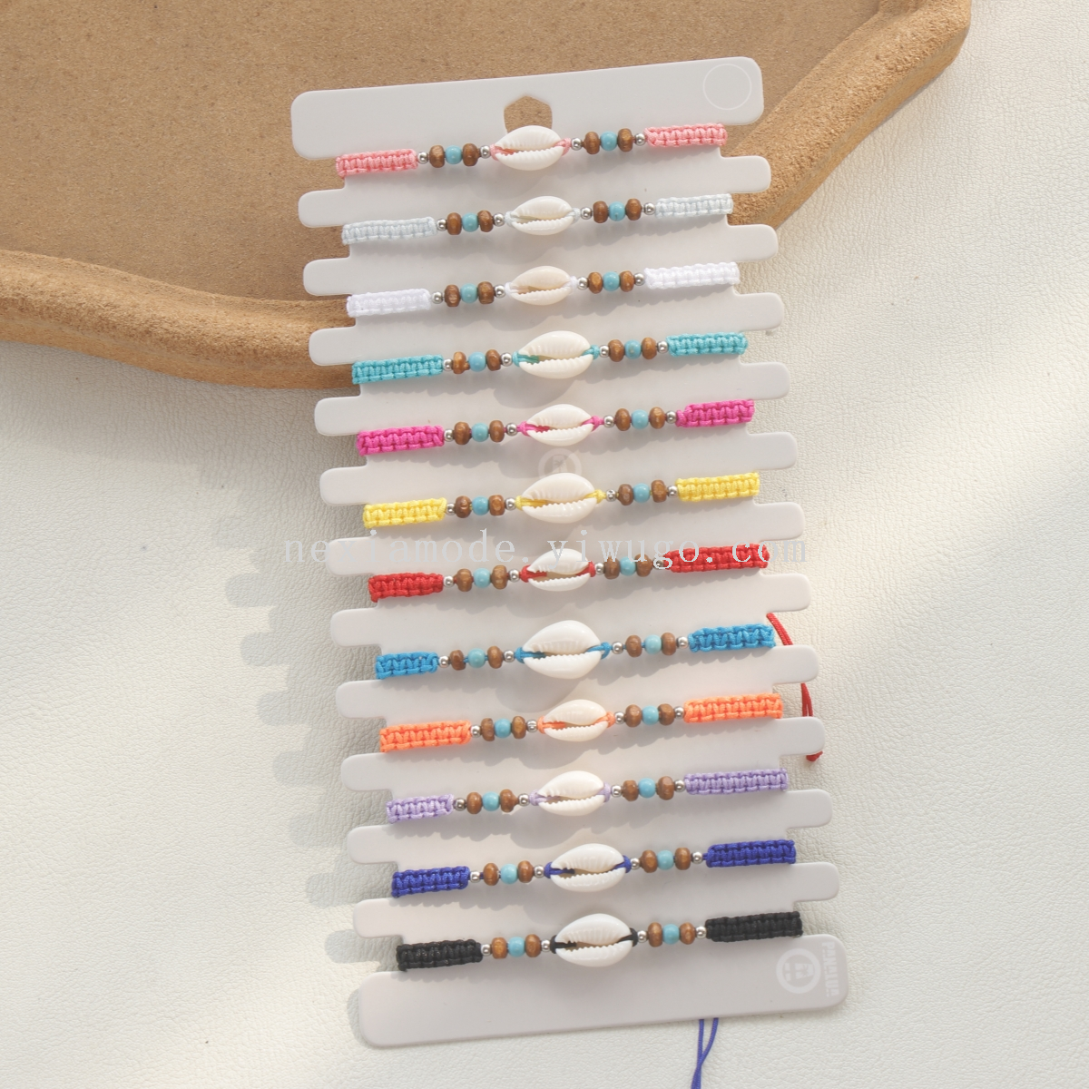 boho minority all-match natural shell multicolor flat knot woven hand strap beach vacation style bracelet in stock 中文版
