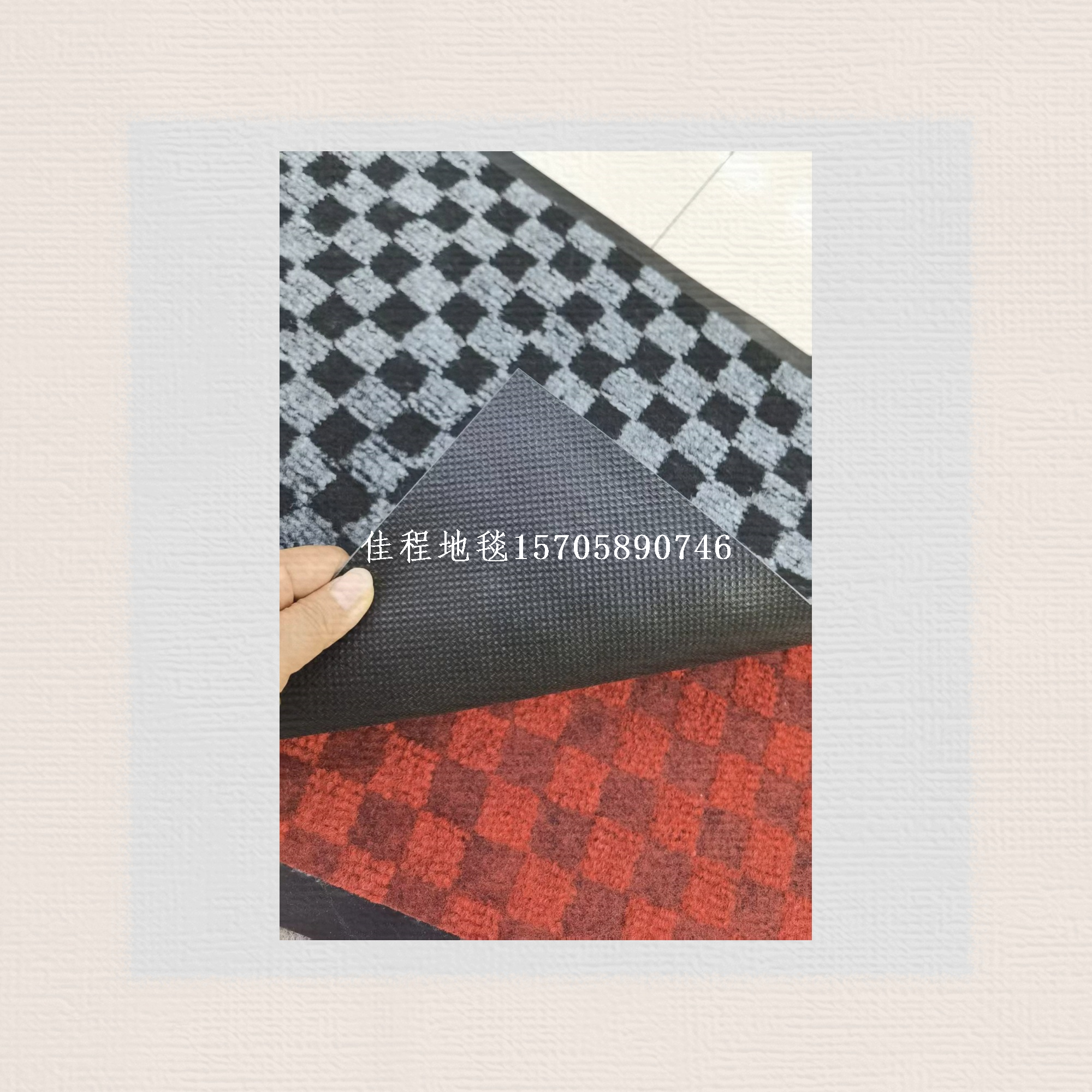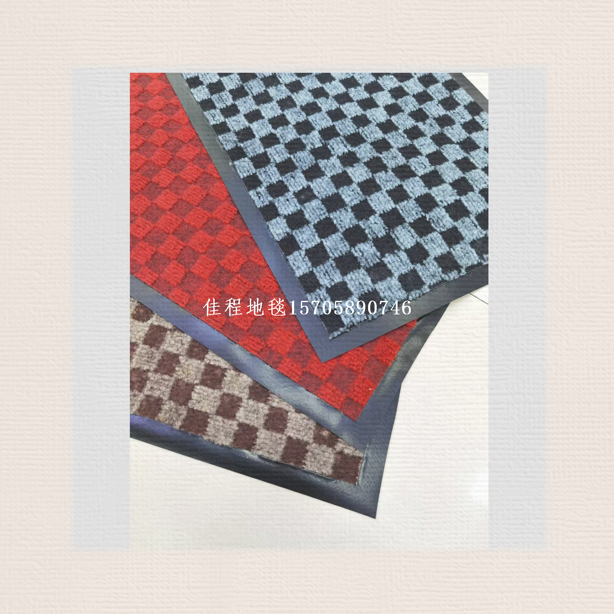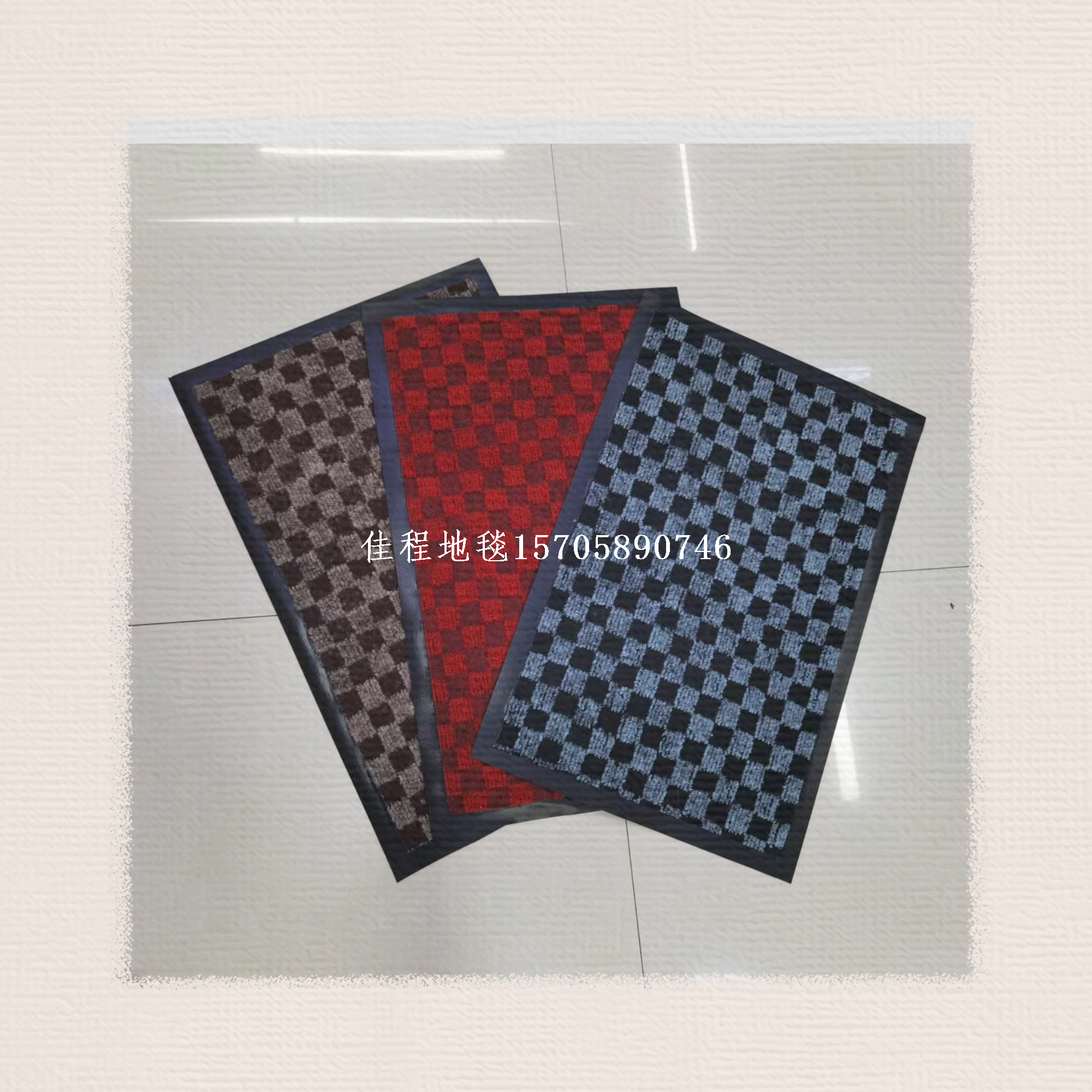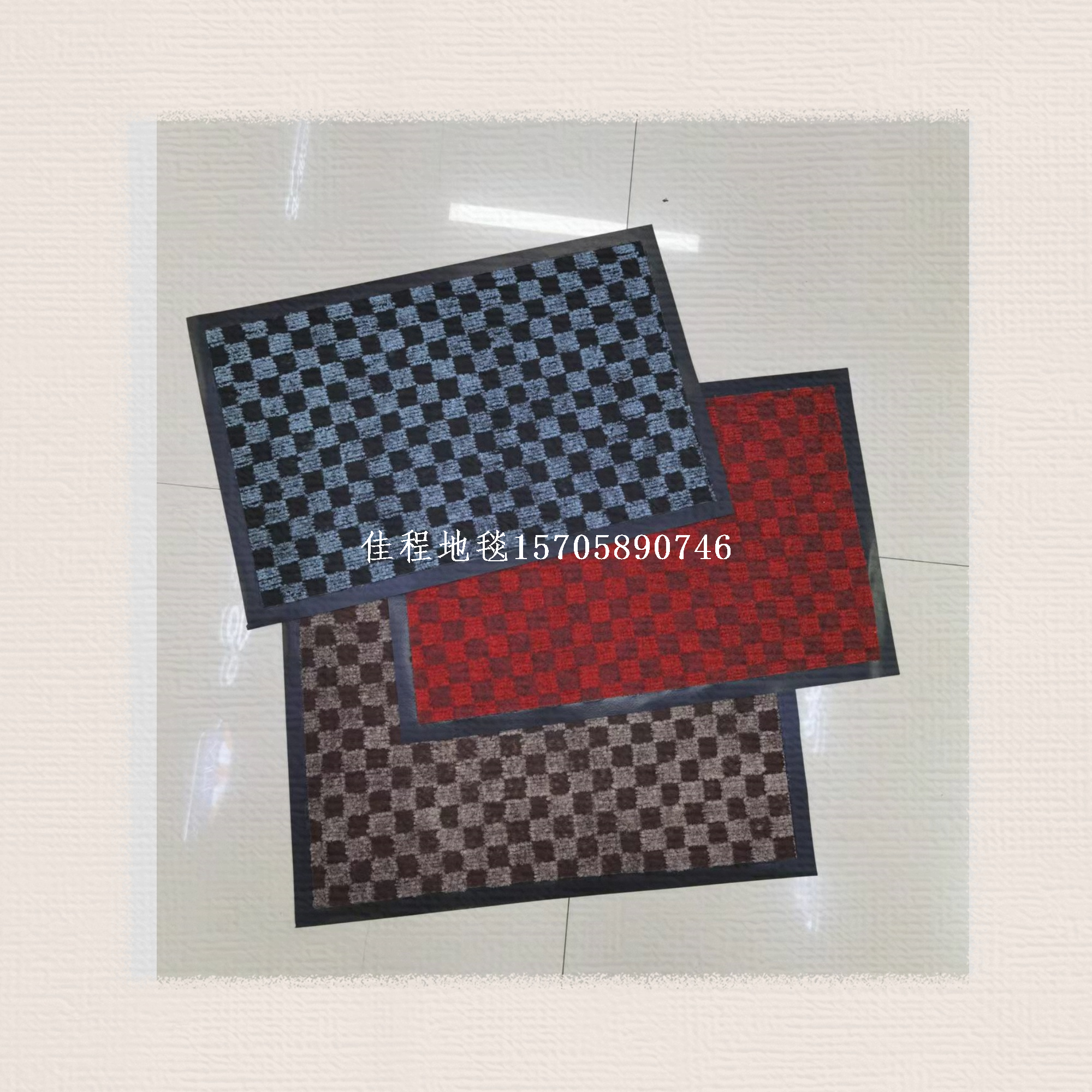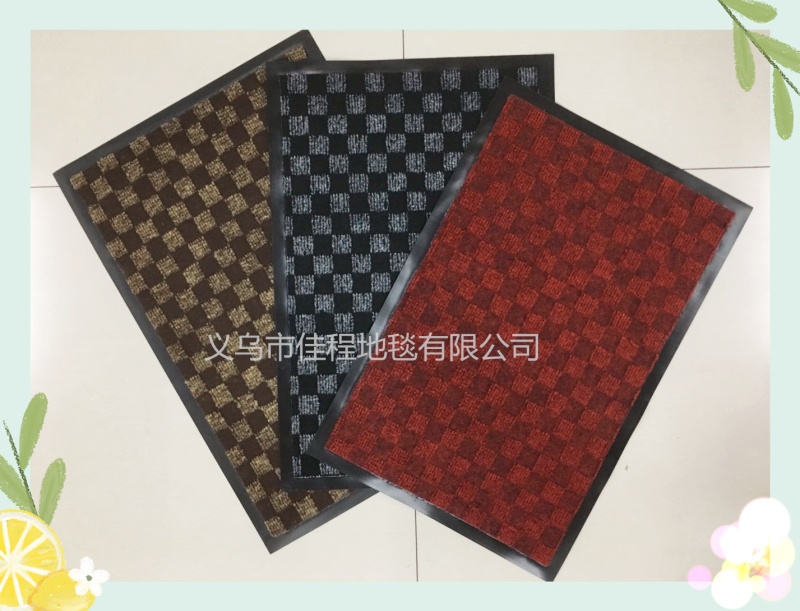 PVC base classic checkerboard rug, check pattern rug, square pattern rug, water absorptionNon-slip mats, polyester floor mats, jacquard floor mats. Three classic colors: gray, coffee, dark red.