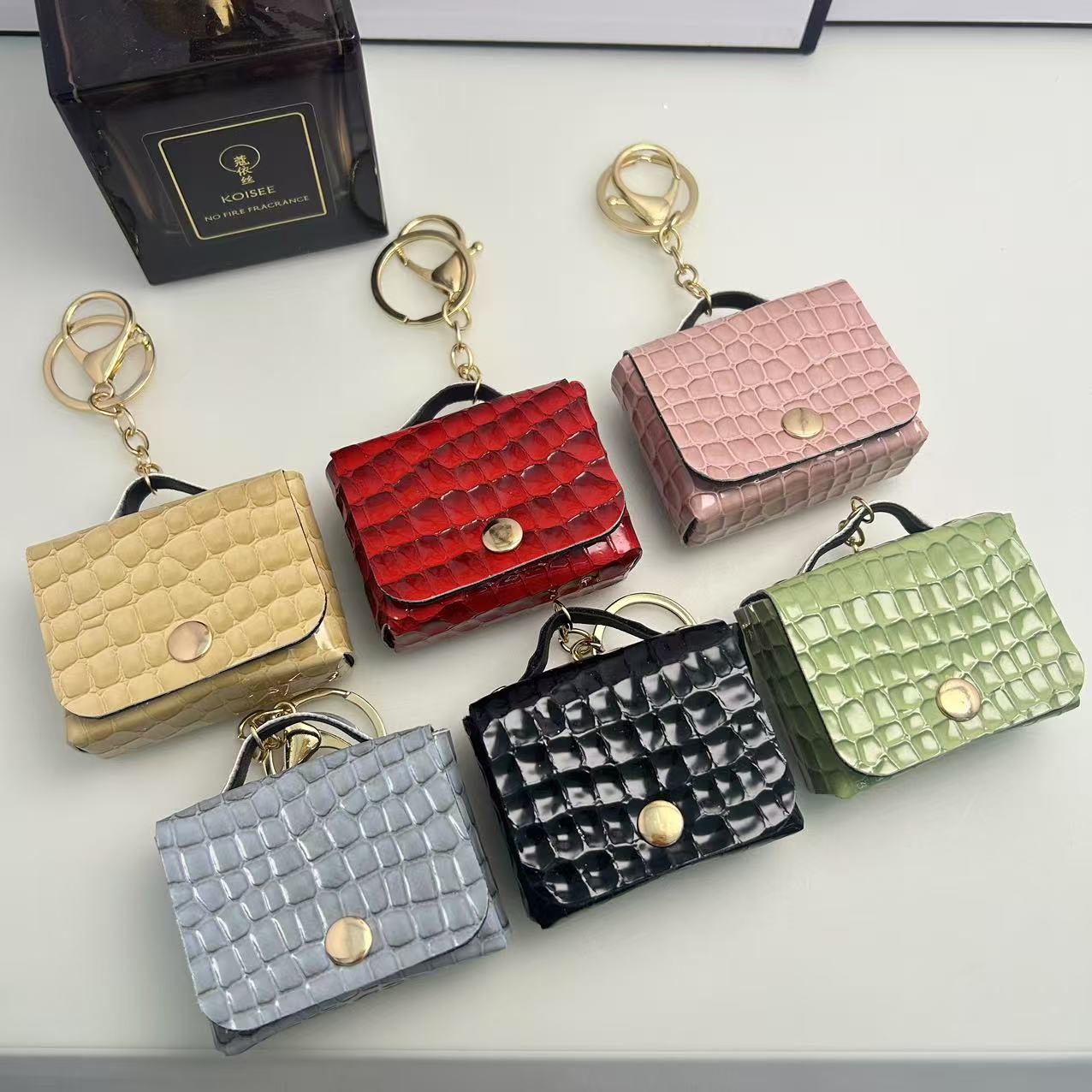 2025 new earphone bag mini bag imitation crocodile leather small bag temperament mixed color keychain pendant 中文版