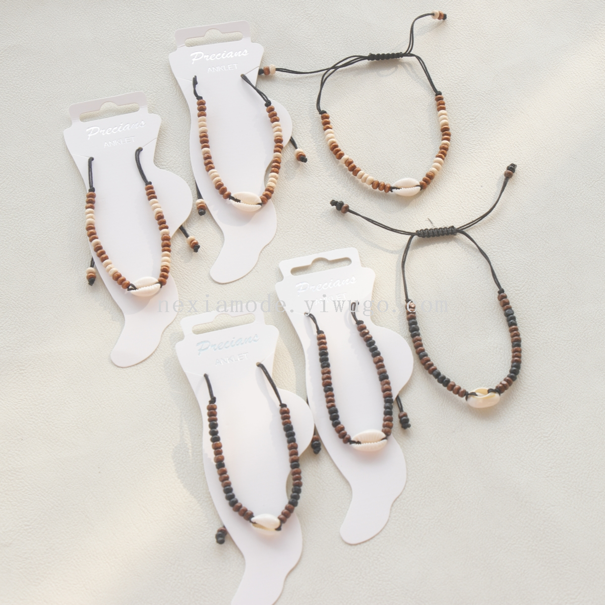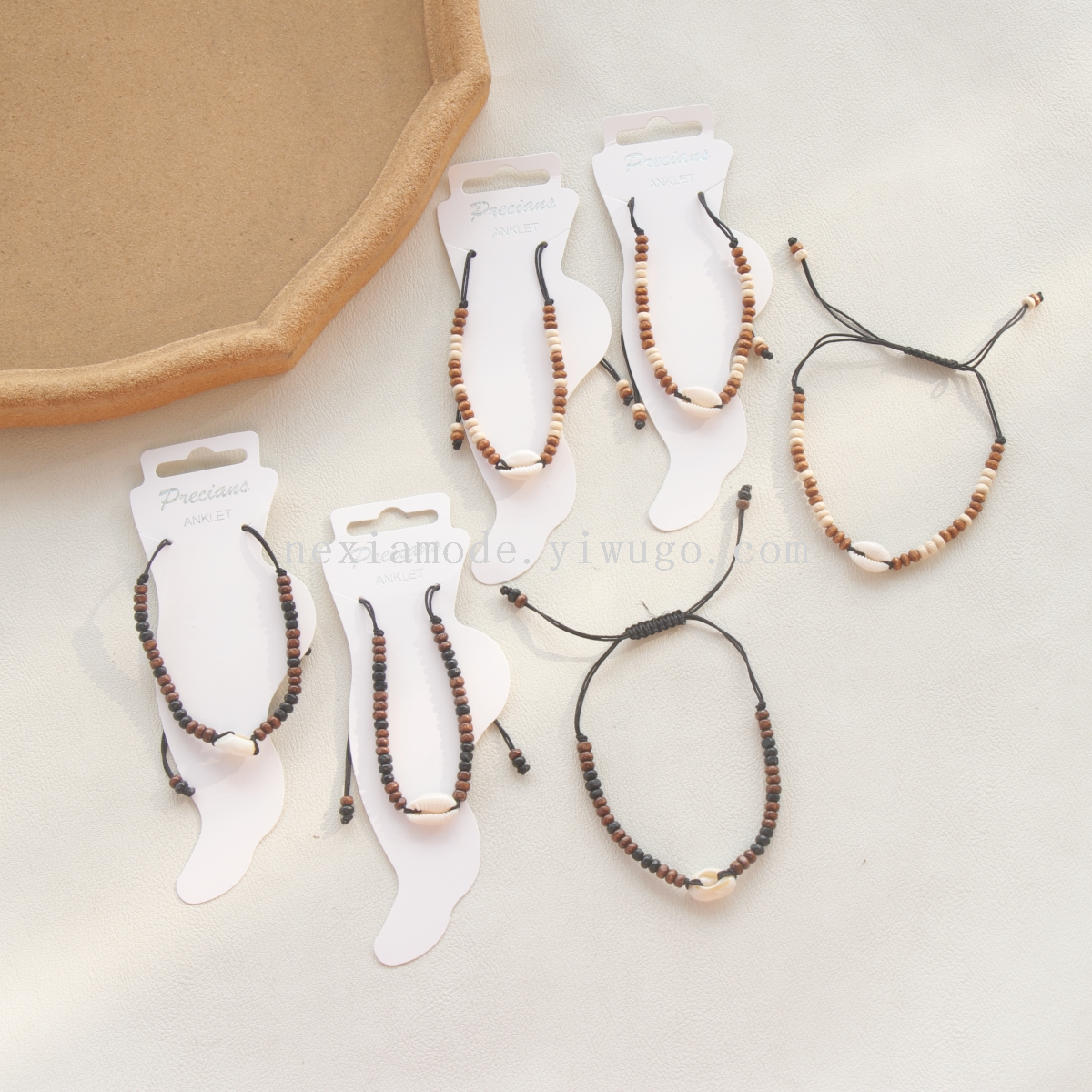 new good-looking maillard style natural shell wooden bead anklet beach vacation ocean style anklet customized 中文版