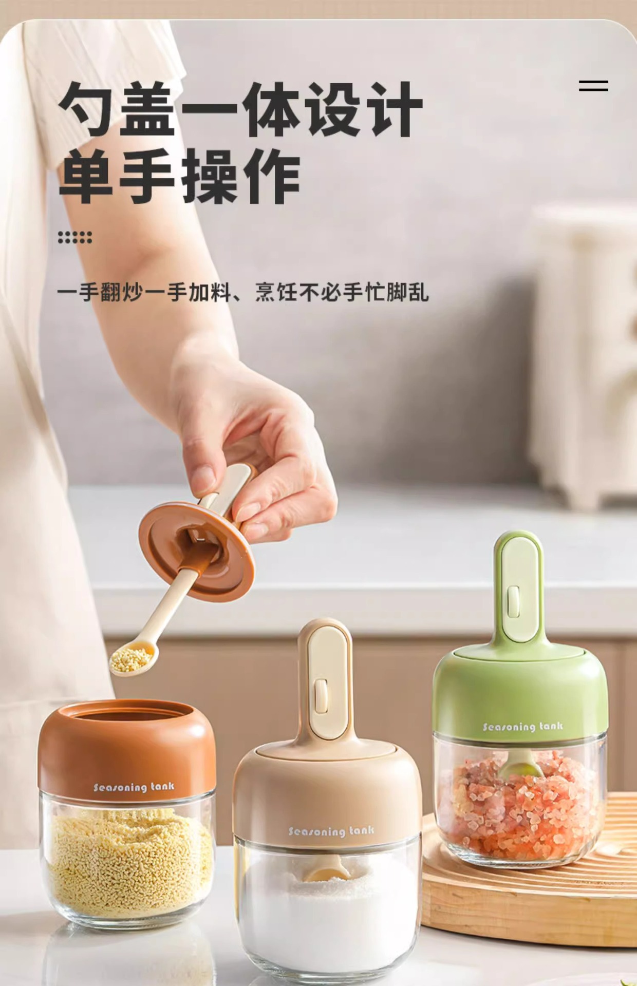 fresh green + cream gray caramel brown [3 packs] spoon retractable
