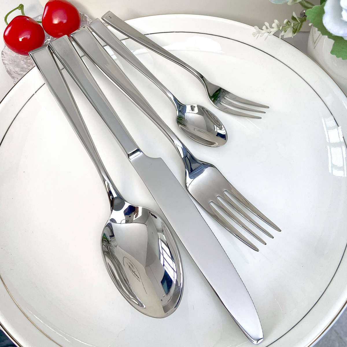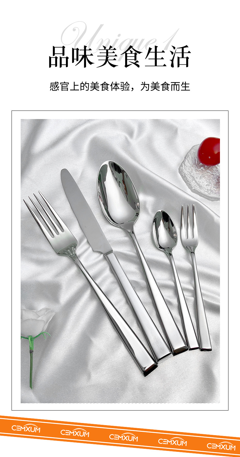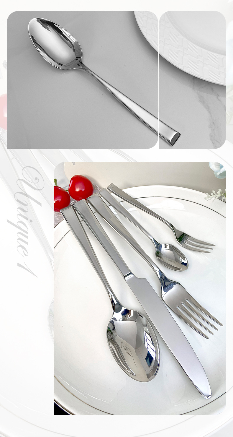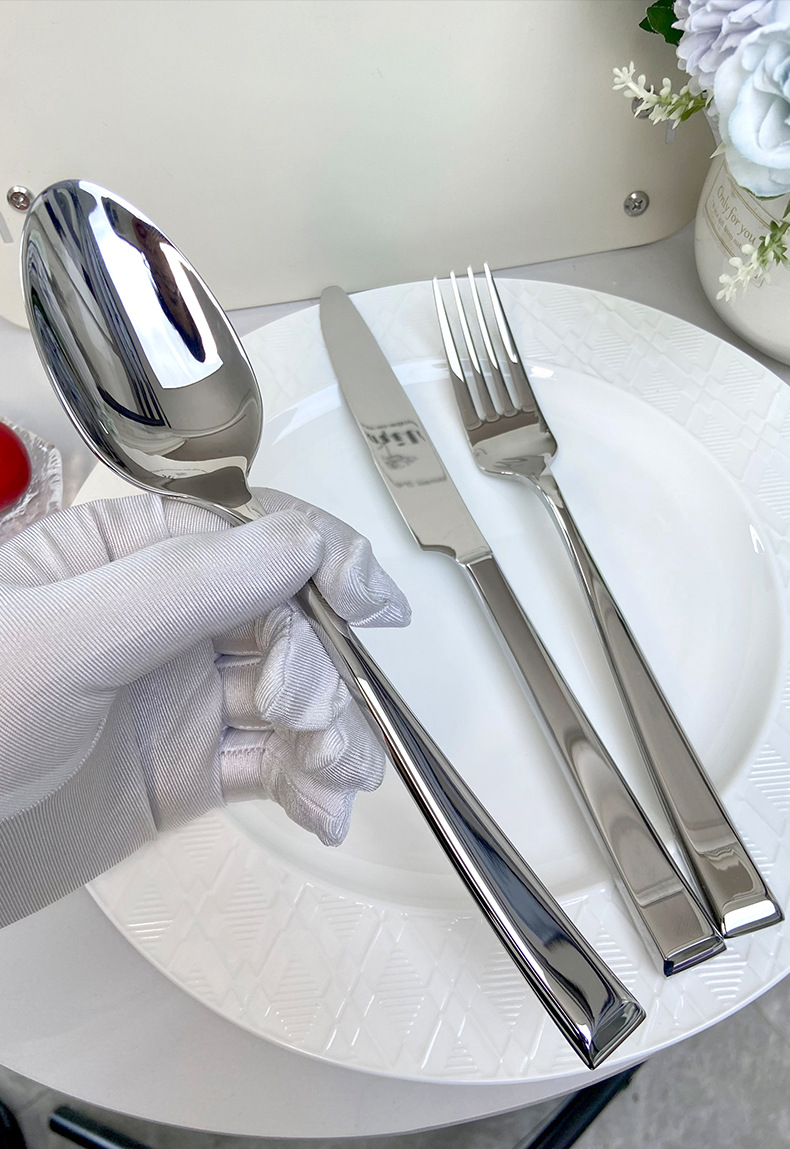 [square handle elegant] 304 stainless steel high-end simple forged square handle elegant series hotel dining tableware