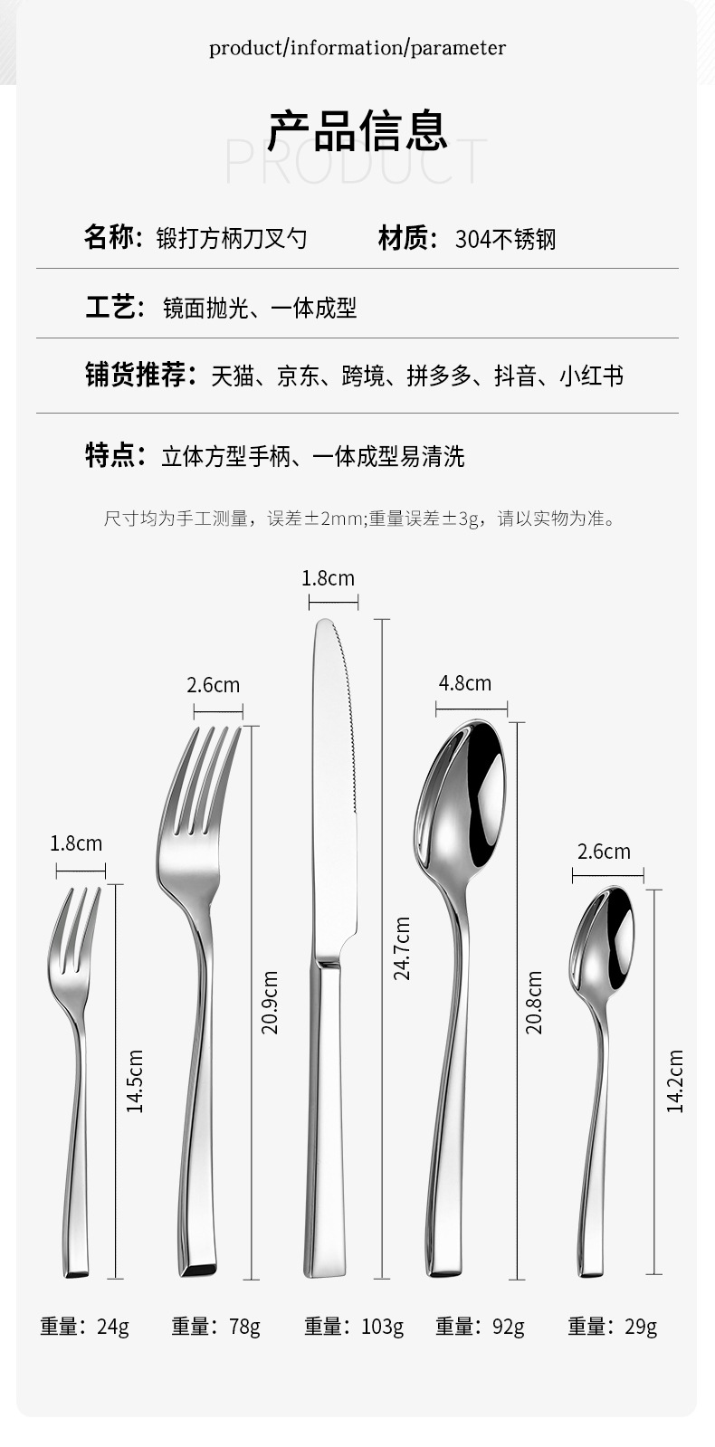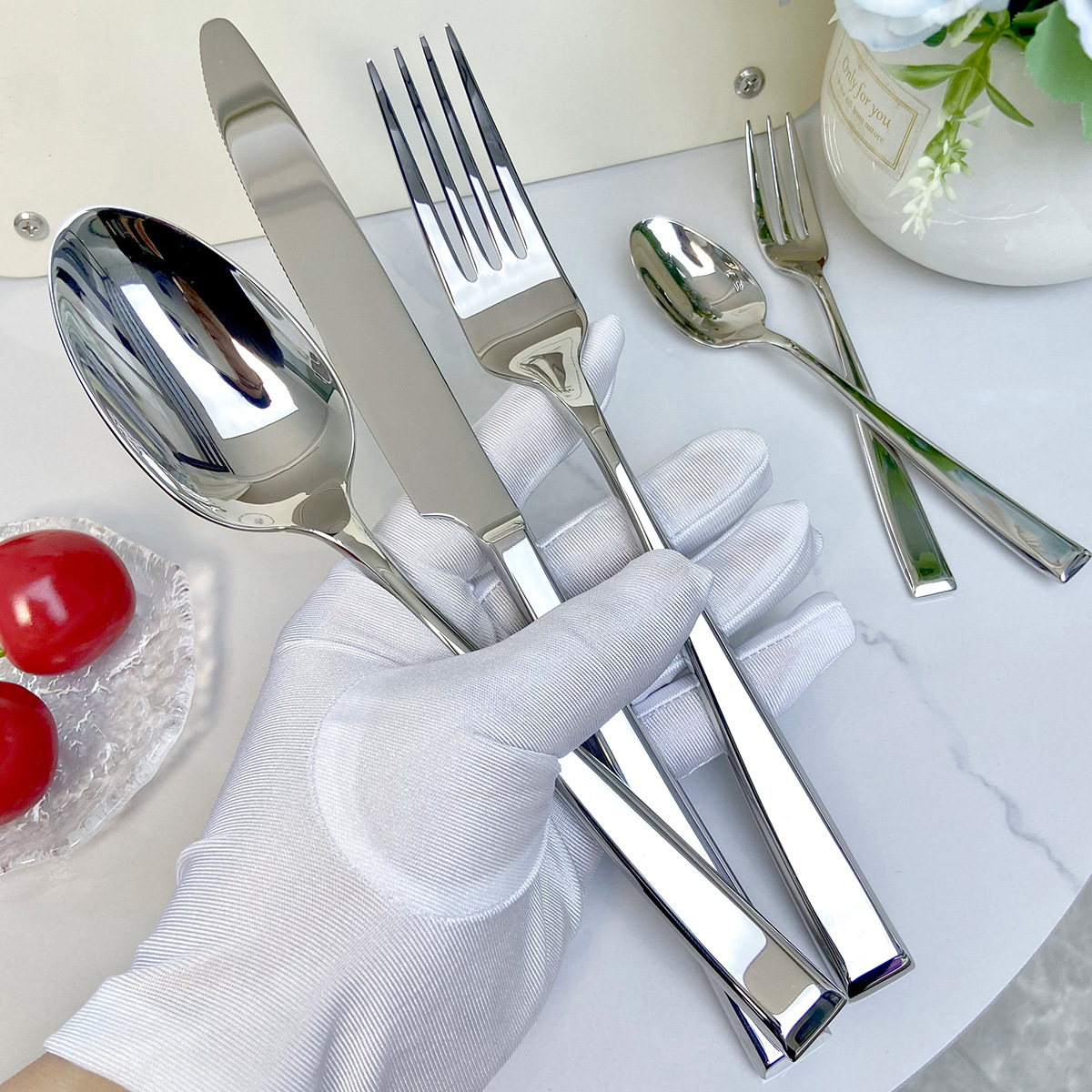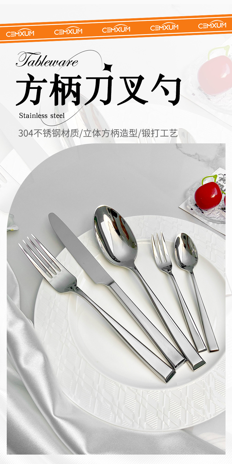 [square handle elegant] 304 stainless steel high-end simple forged square handle elegant series hotel dining tableware