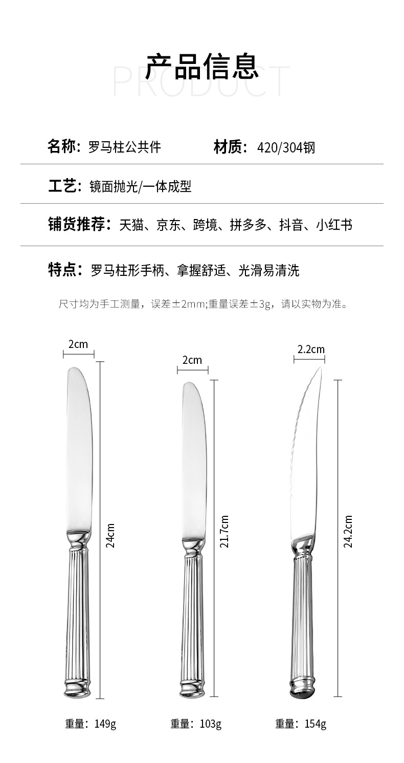 [roman column] 304 stainless steel forging craft advanced retro roman column hotel western food tableware set