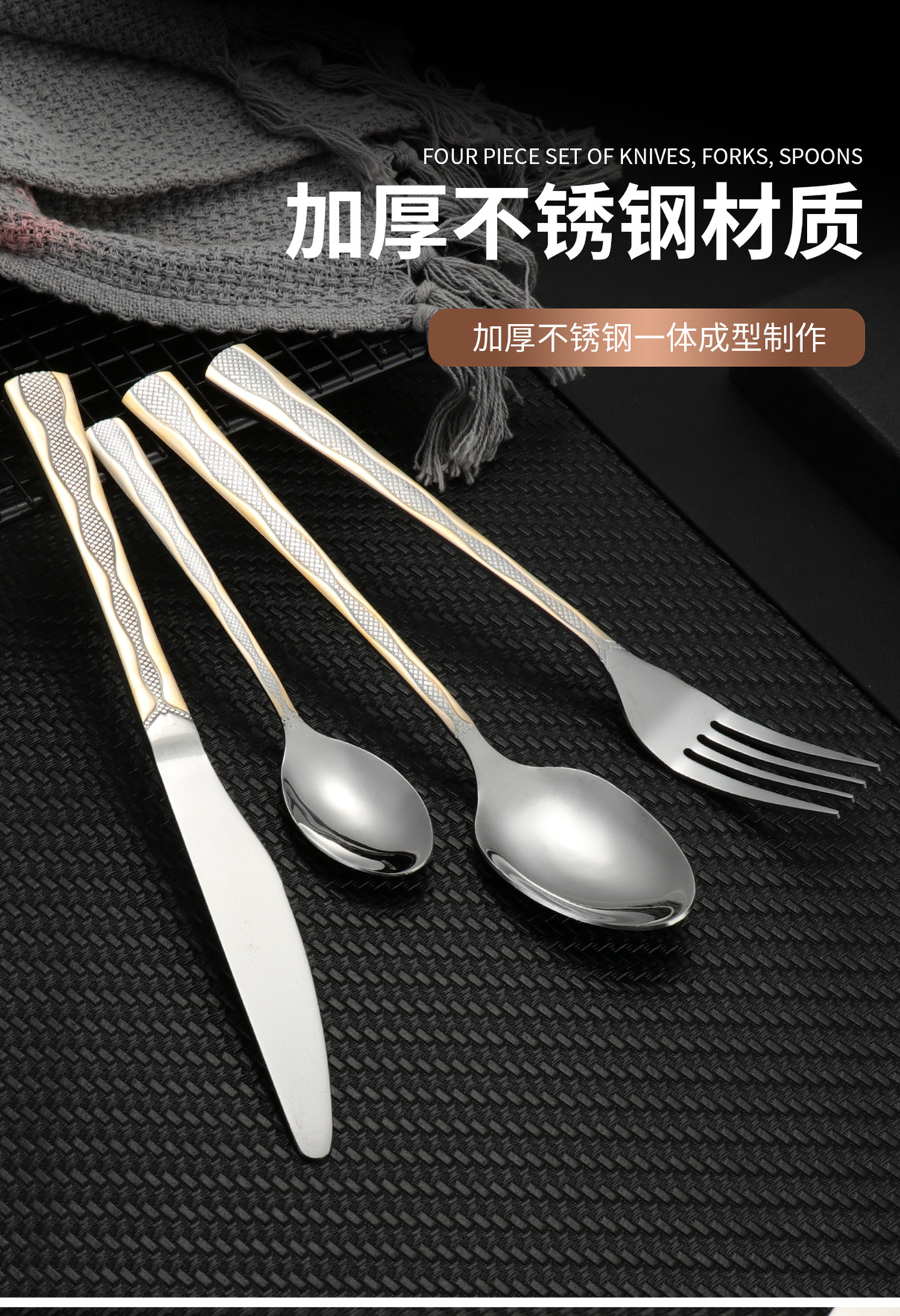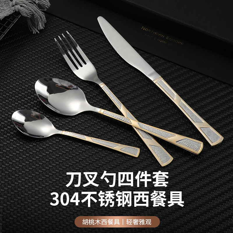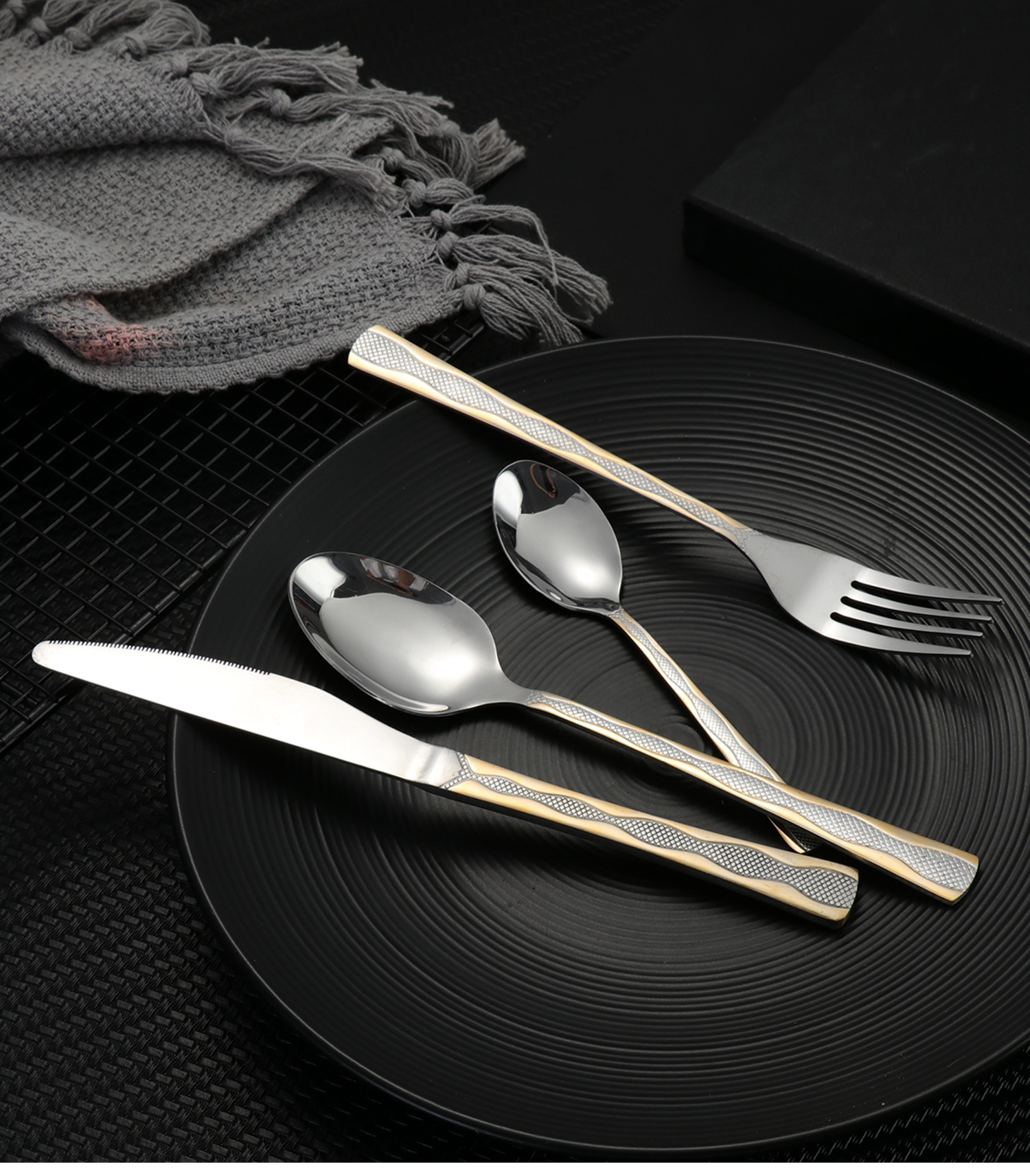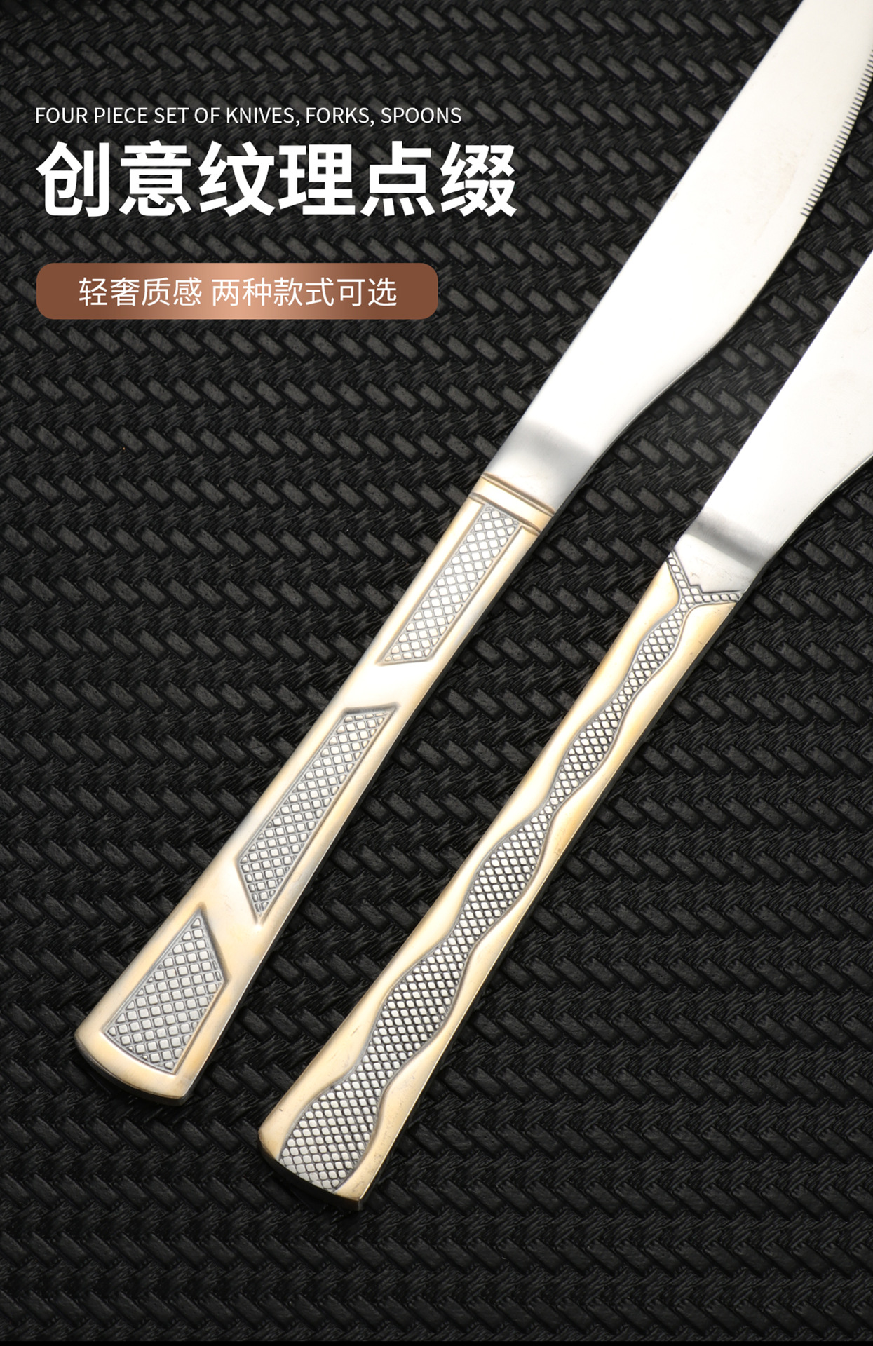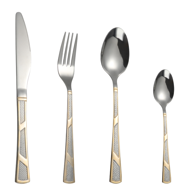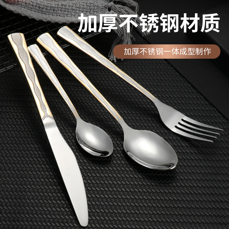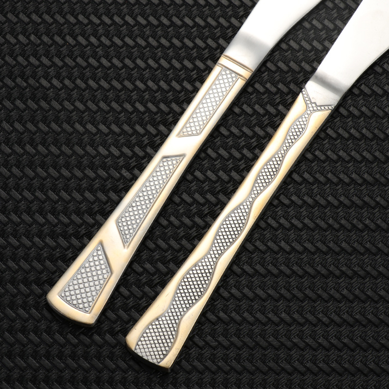 [three-section/wave grid] 410 stainless steel three-section wave grid handle height level laser light luxury texture suit