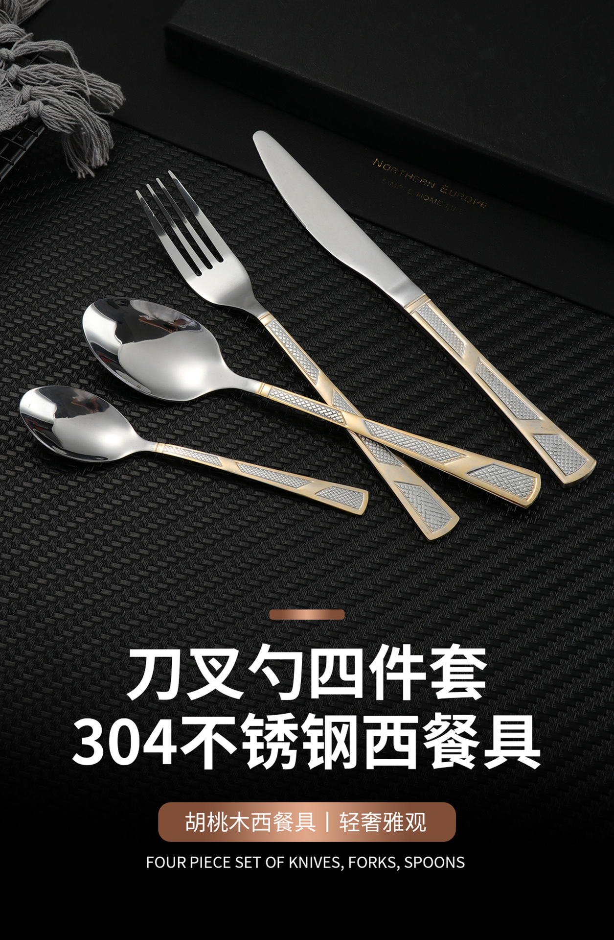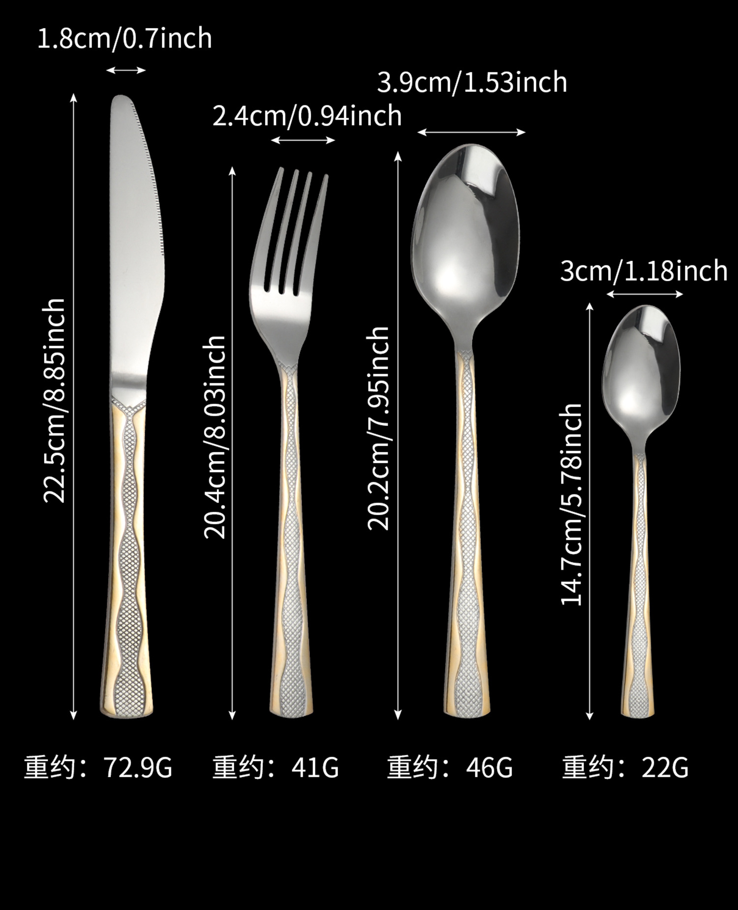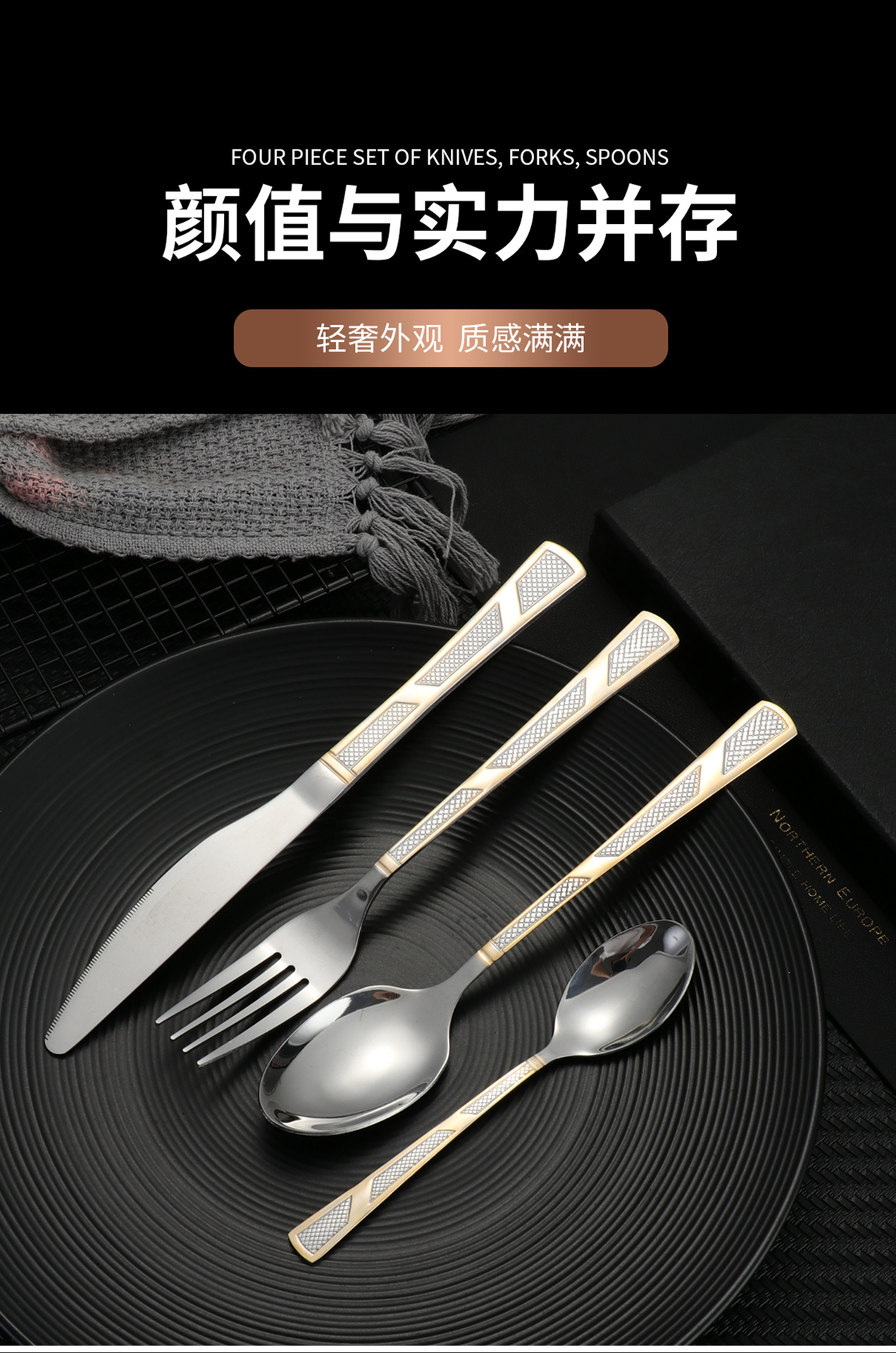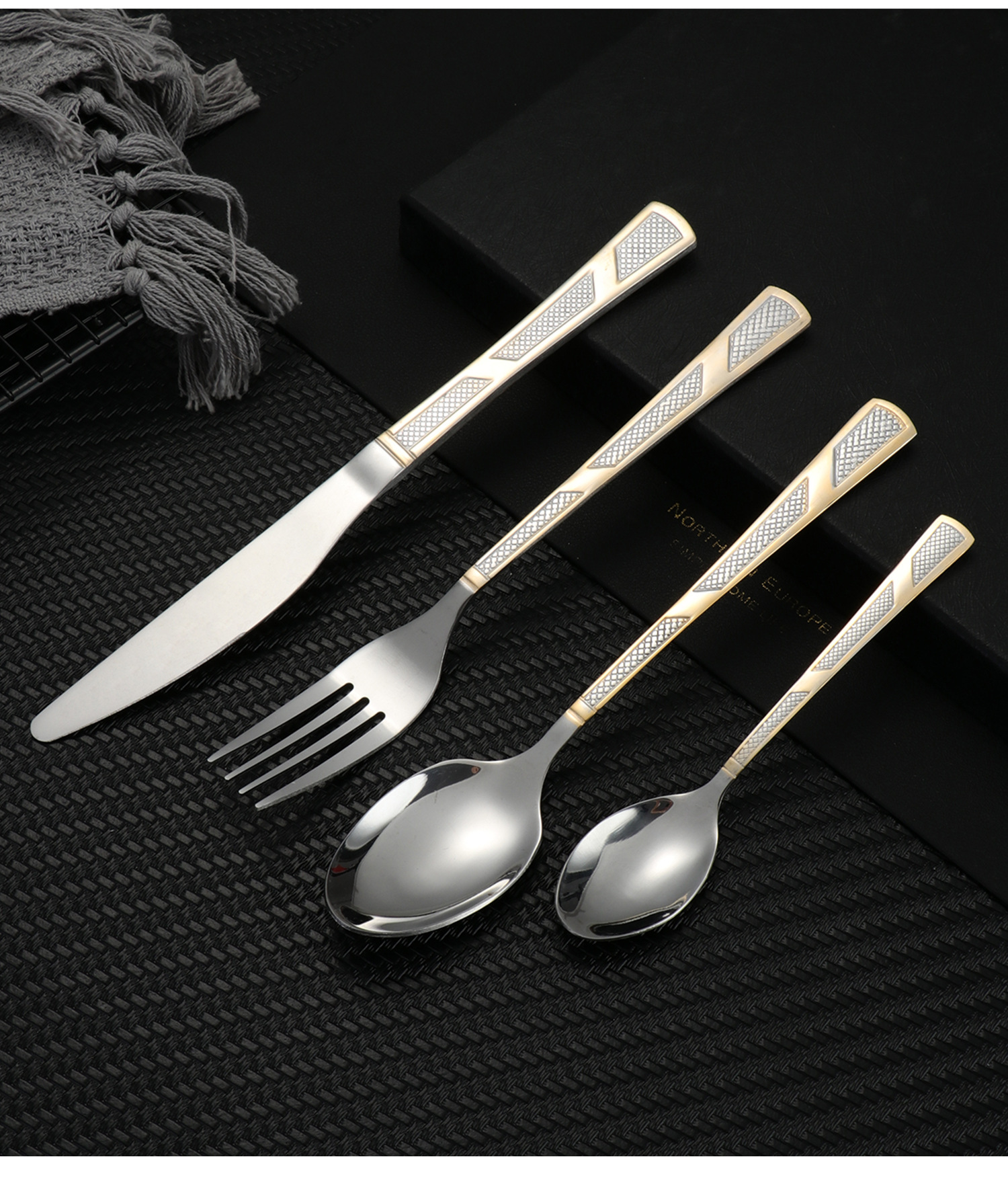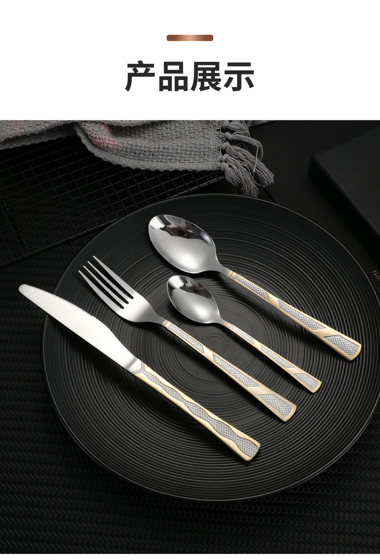 [three-section/wave grid] 410 stainless steel three-section wave grid handle height level laser light luxury texture suit