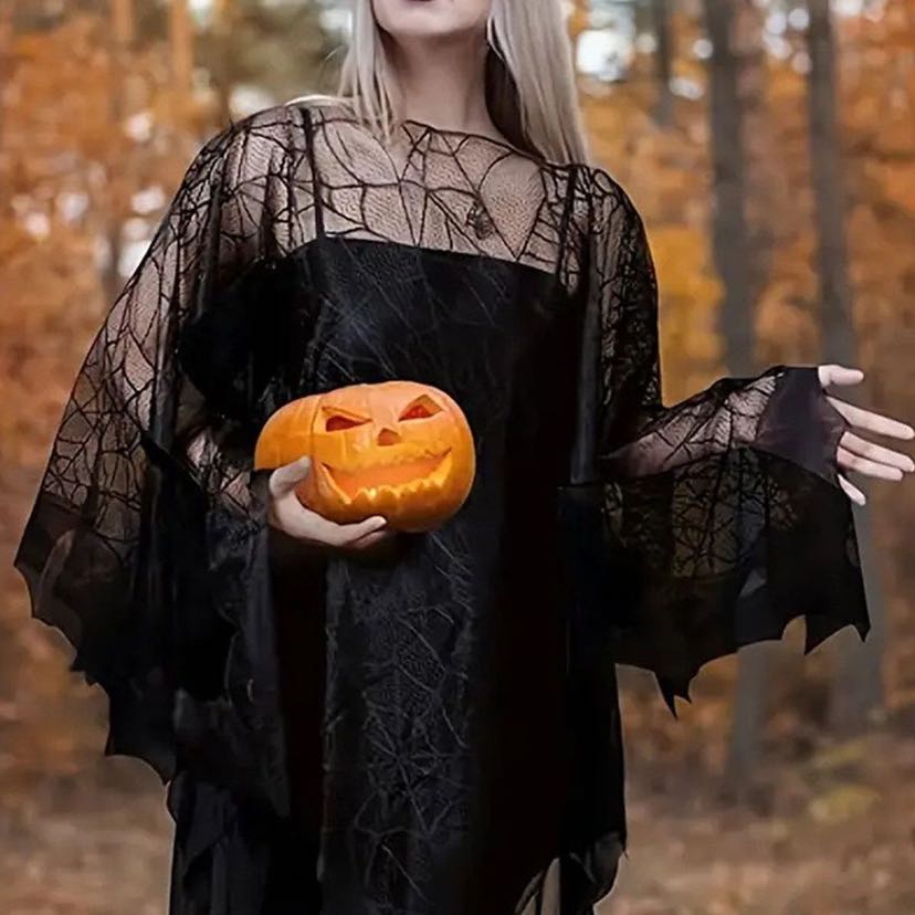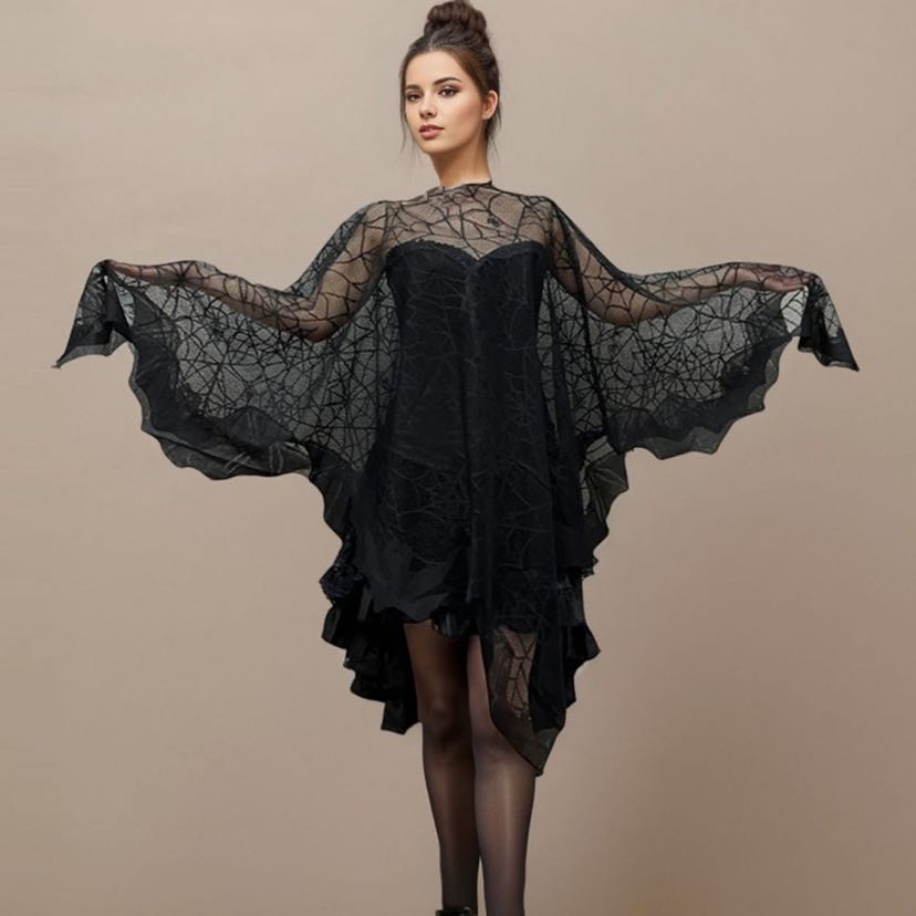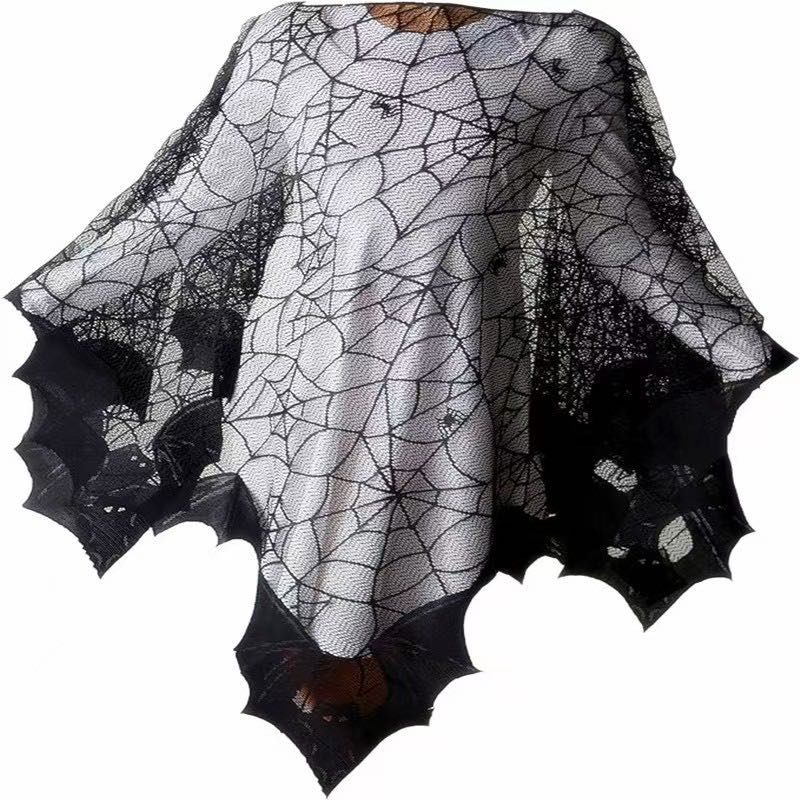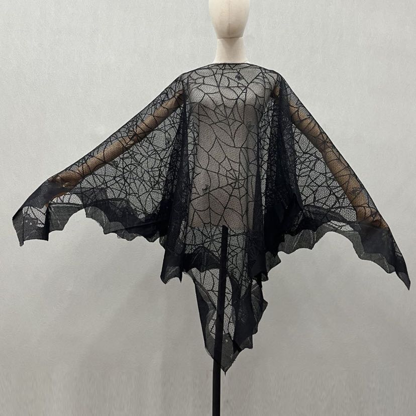 halloween cloak black lace spider mesh bat shawl halloween performance clothes dark props costume 中文版