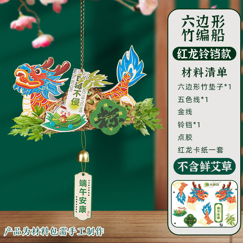 2025 new dragon boat hexagonal bamboo boat (red dragon bell) free non-woven fabric argy wormwood