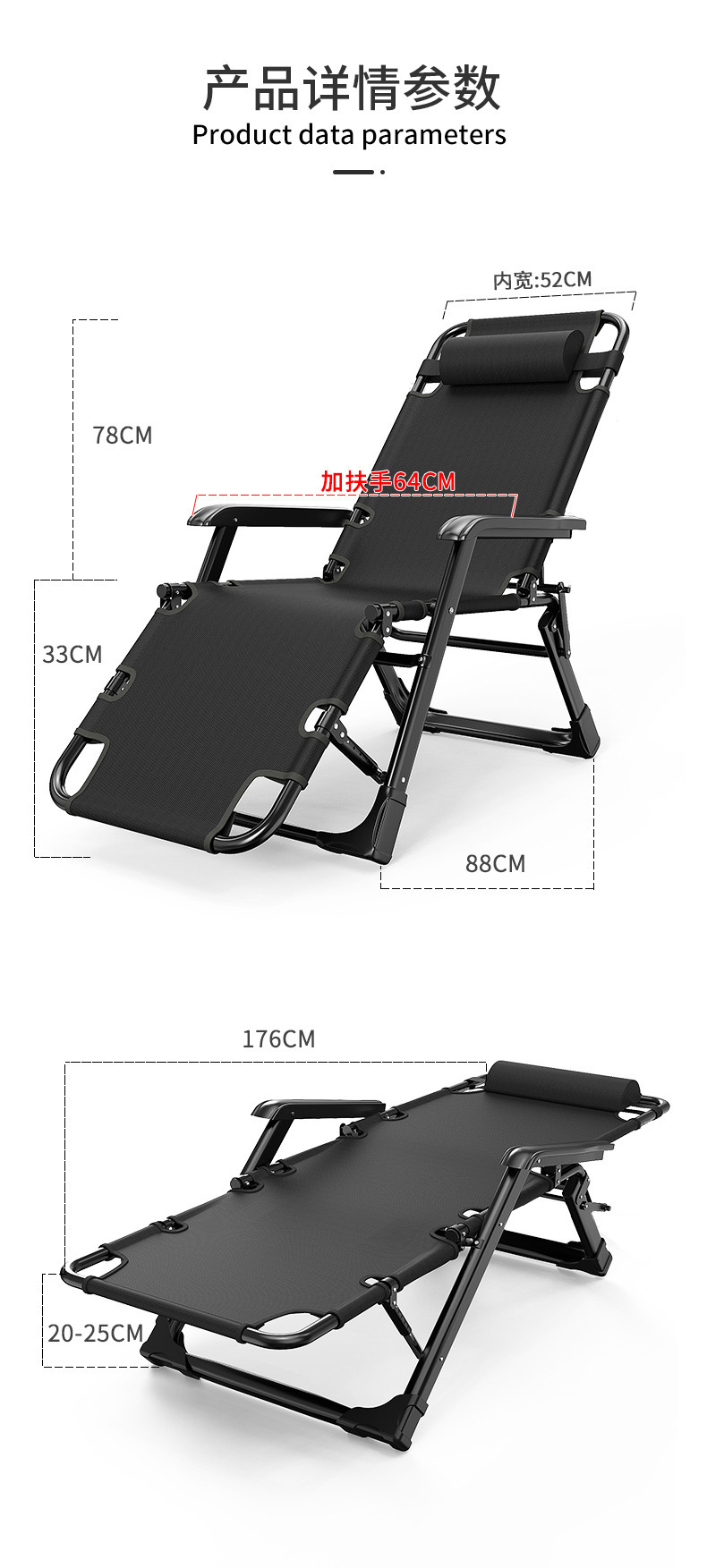 with head support rod both sides tube plaid cloth black + comfortable cotton cushion