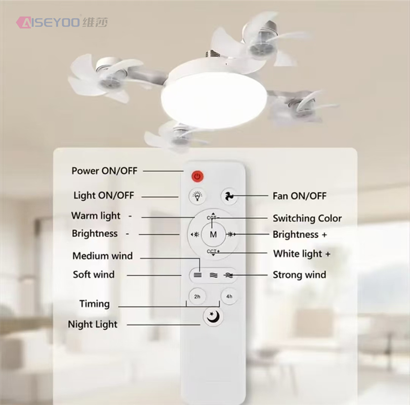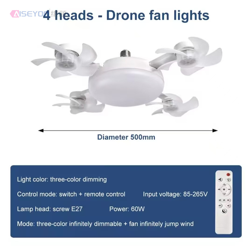 2 In 1 Drone Fan with LED Light Remote Control Hanging Fan 3 Gears Silent Ceiling Drone Fan for Dining Room Bedroom 中文版