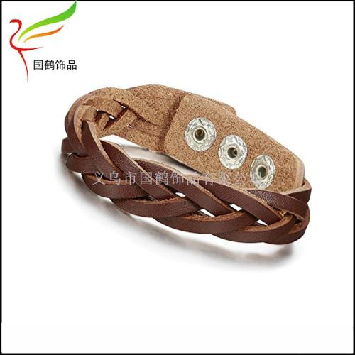 cattle leather bracelet braid pu leather hidden hook adjustable