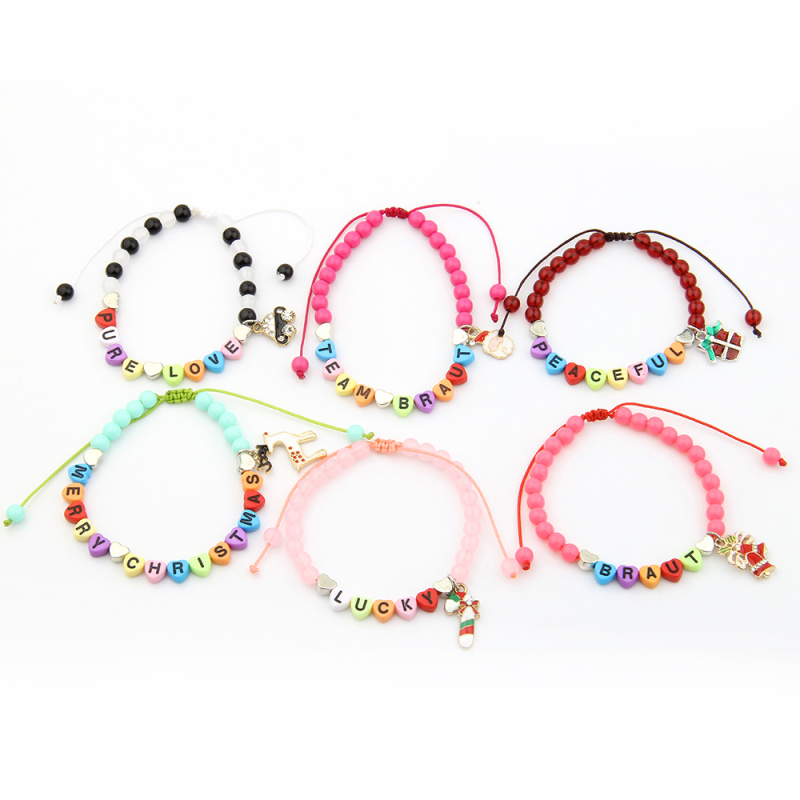 Christmas hot-selling acrylic letter beaded handcrafted wax thread braided adjustable bracelet
