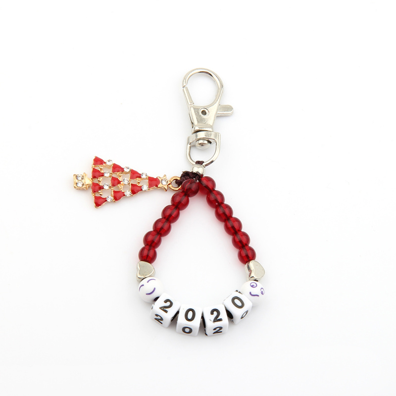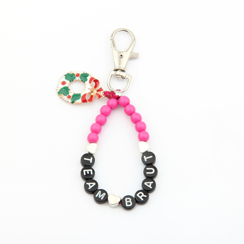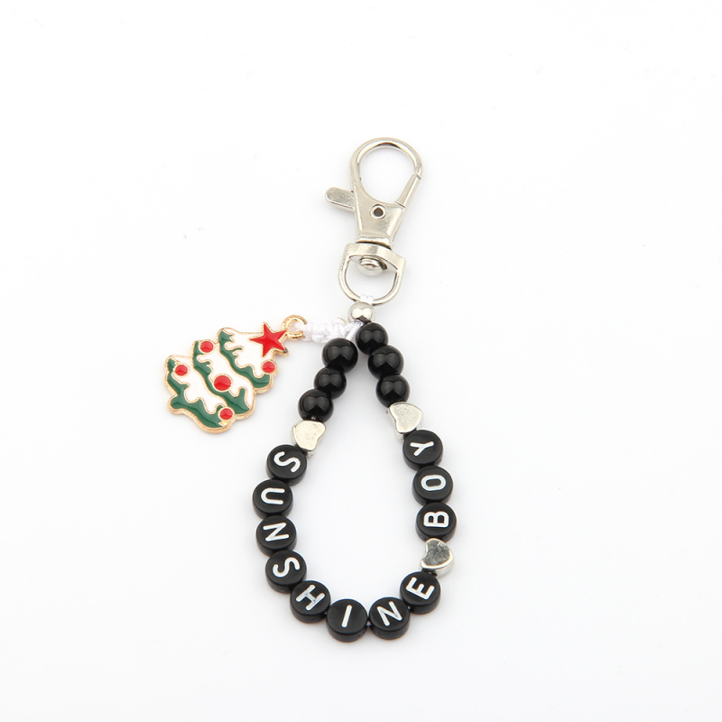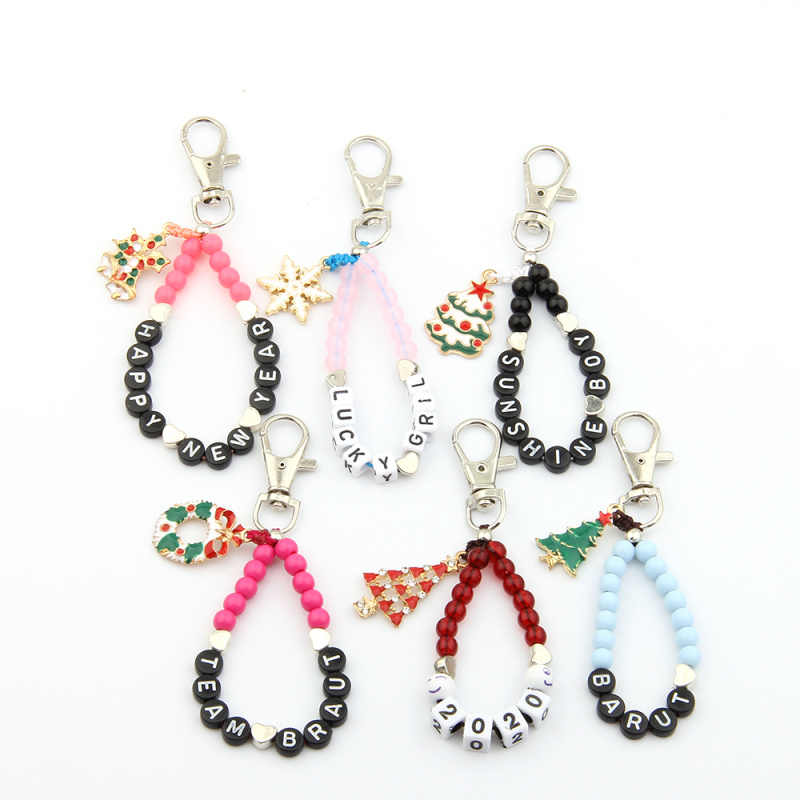 New Christmas style beaded letter alloy drop oil accessories keychain universal matching factory wholesale
