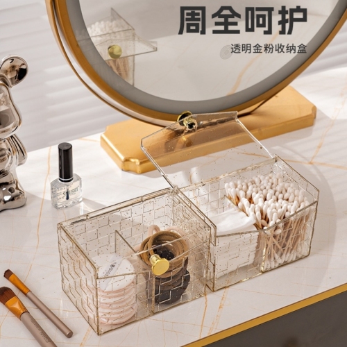 y24-6600 light luxury transparent gold powder cotton box cosmetic shelf desktop dresser lipstick storage box