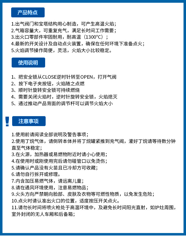 大直冲、不锈钢管、可调火焰大小,火焰可烧1300c度,可调明火,可倒置使用,360c度使用。