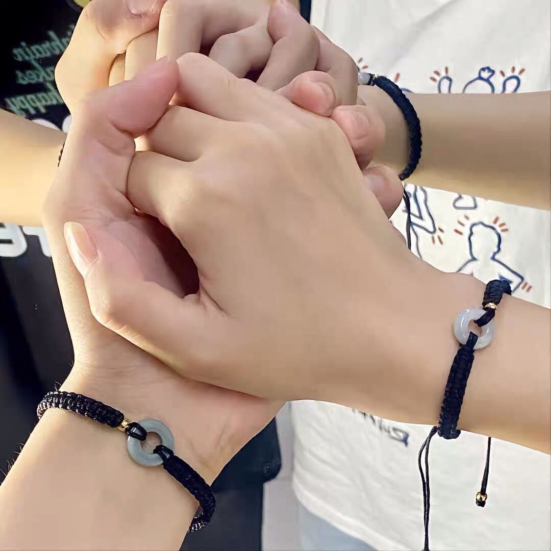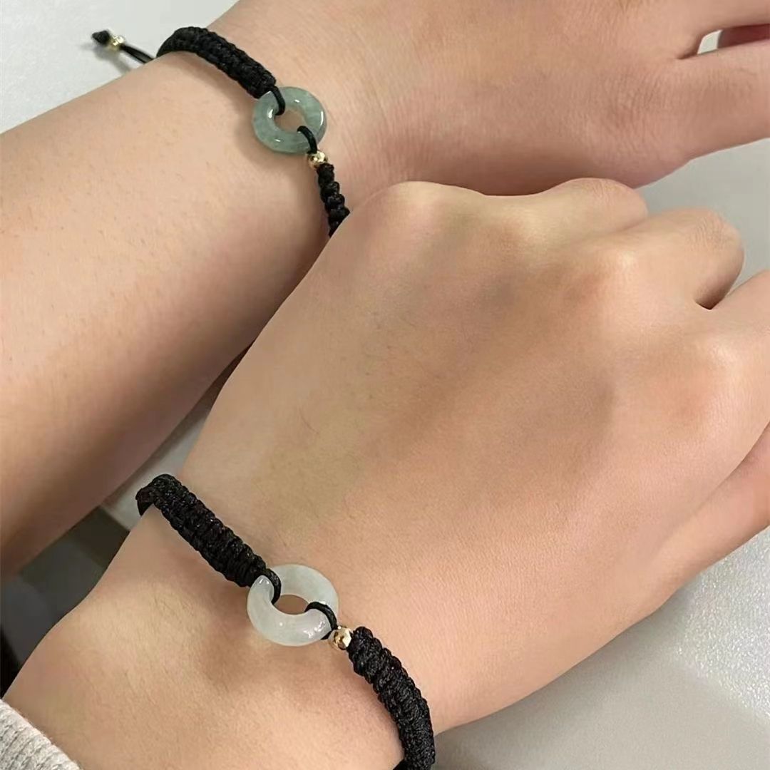xiaohongshu same style ping an joy chalcedony safety decoration couple bracelet mori style adjustable gift handmade braided rope 中文版