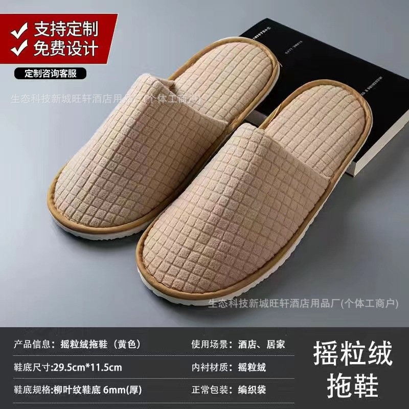 non-slip point plastic cloth bottom plush slippers yellow edge