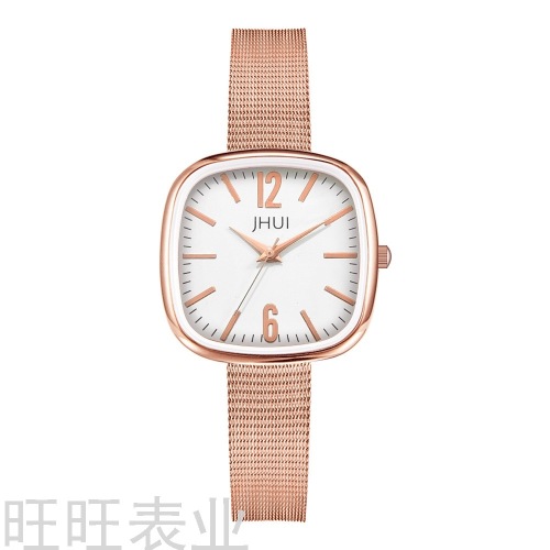 square rose gold mesh quartz wrist watch fashion simple digital women's watch factory direct sales 中文版