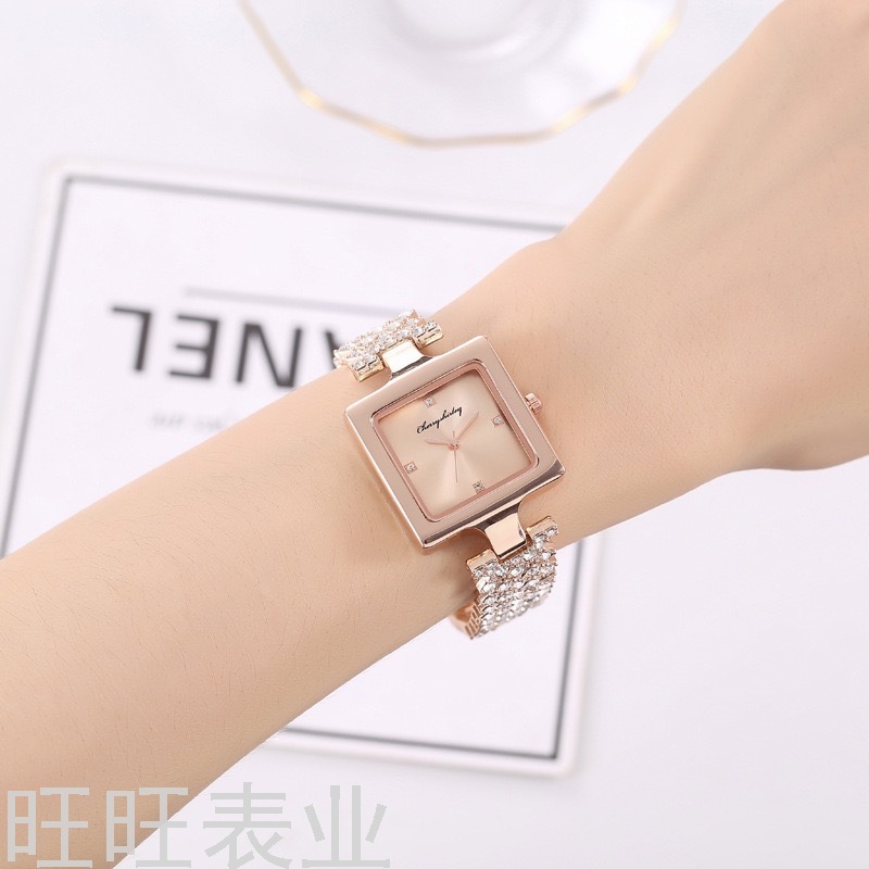 luxury women's fashion creative square dial diamond women's rhinestone quartz wrist watch wholesale 中文版