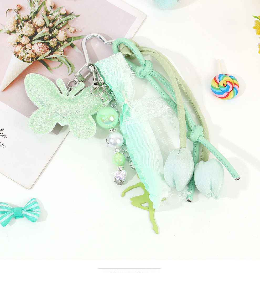ins ballet cartoon young girl butterfly lace ribbon bag hanging new pendant chain cute multi-element keychain 中文版