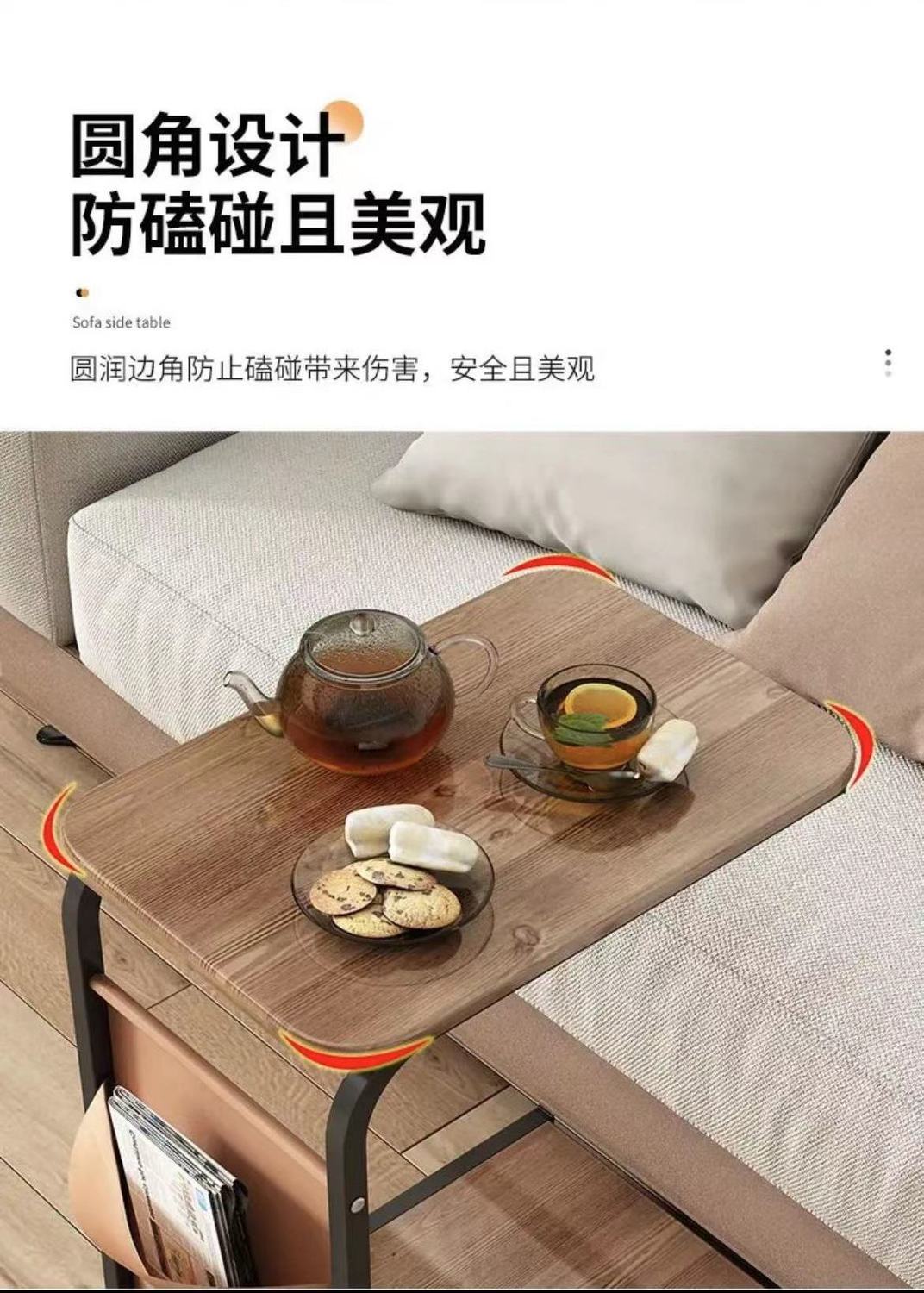 bedside side table sofa small coffee table movable living room side table pulley mini corner table tea table simple side table bedroom.