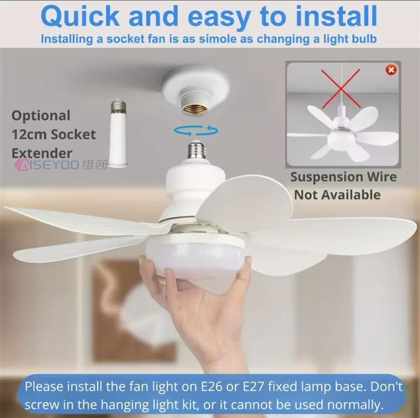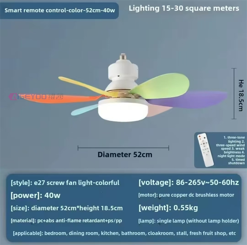 led 40w socket ceiling fan with light, 20.5in screw ceiling fans with lights with remote, for bedroom/garage/ kitchen 中文版