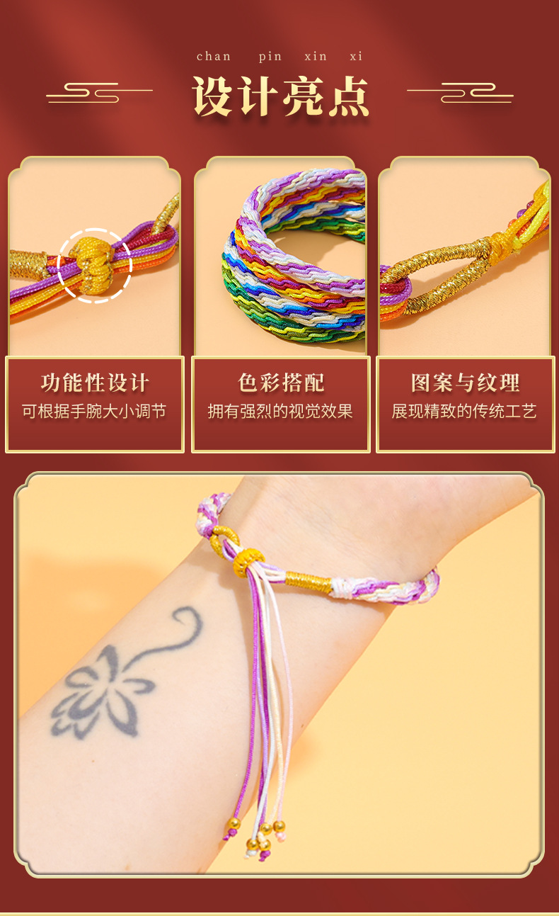 tibetan style hand-knitted rope colorful carrying strap hand rub cotton string handmade weaving ethnic style bracelet hanfu tibetan accessories cycle bracelet 中文版