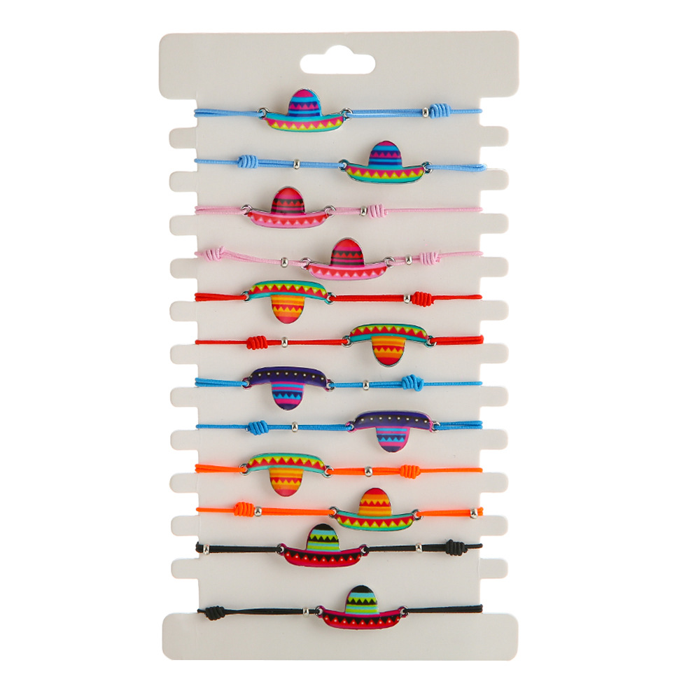 Name: 1 Card 12 Colorful Pattern Hat Elastic Bracelet