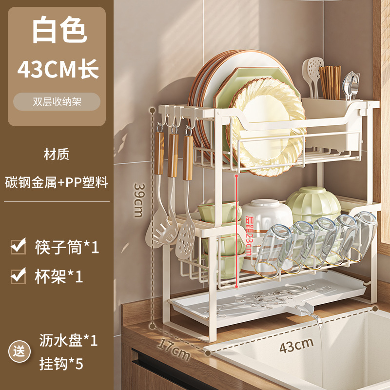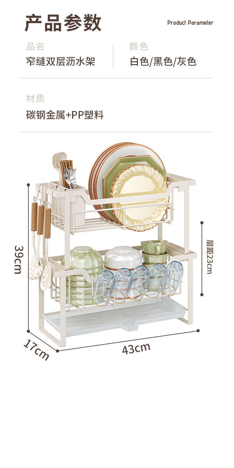 double-layer narrow dish rack full set white