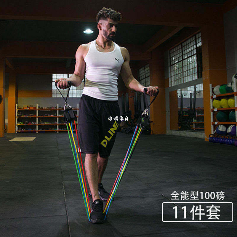 tpe elastic belt chest expander tension belt set multi-functional door sports 11-piece set combination pulling rope