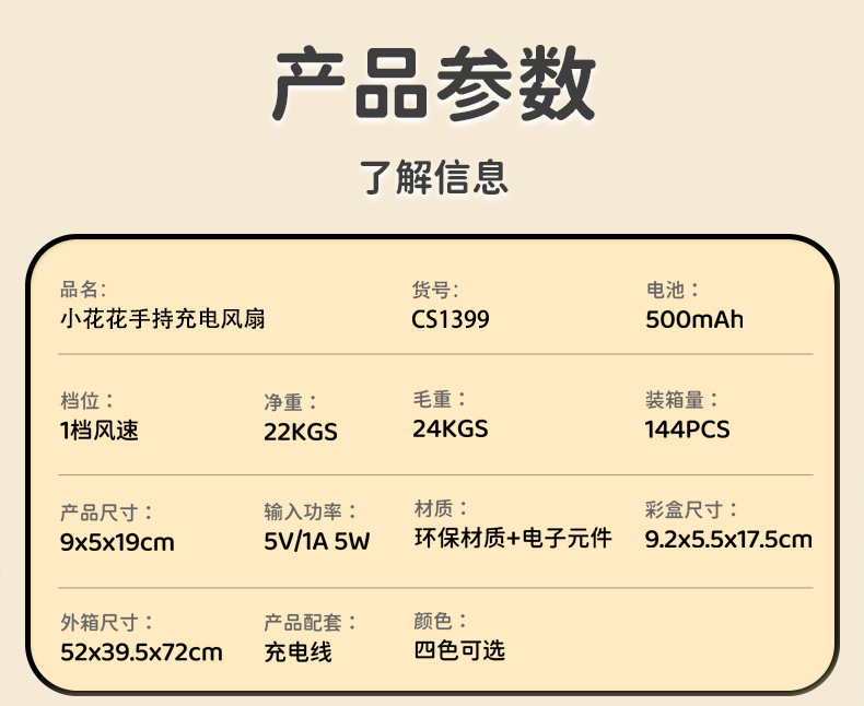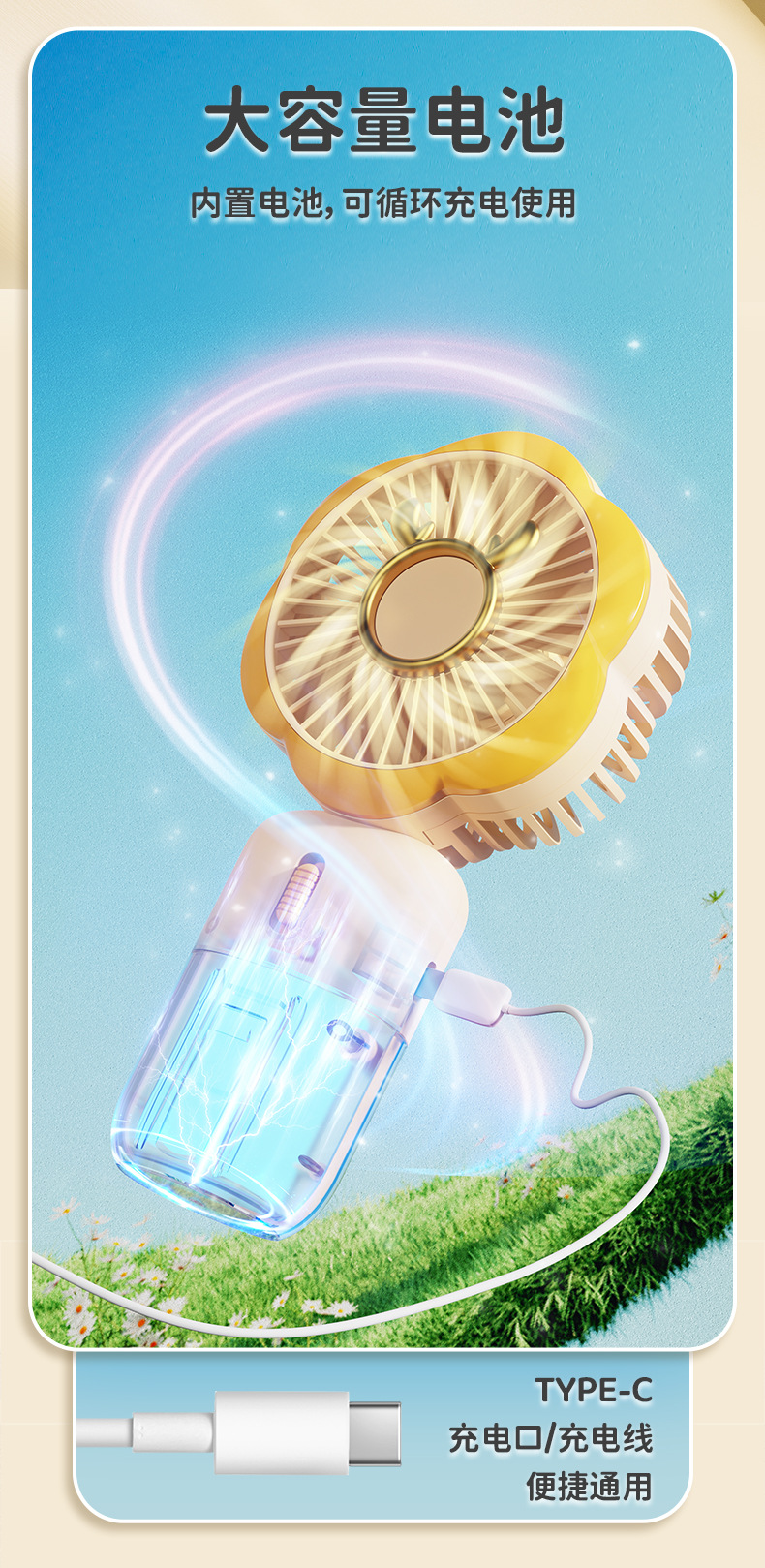 【Product Name】: HuaHua USB Charging Handheld Fan