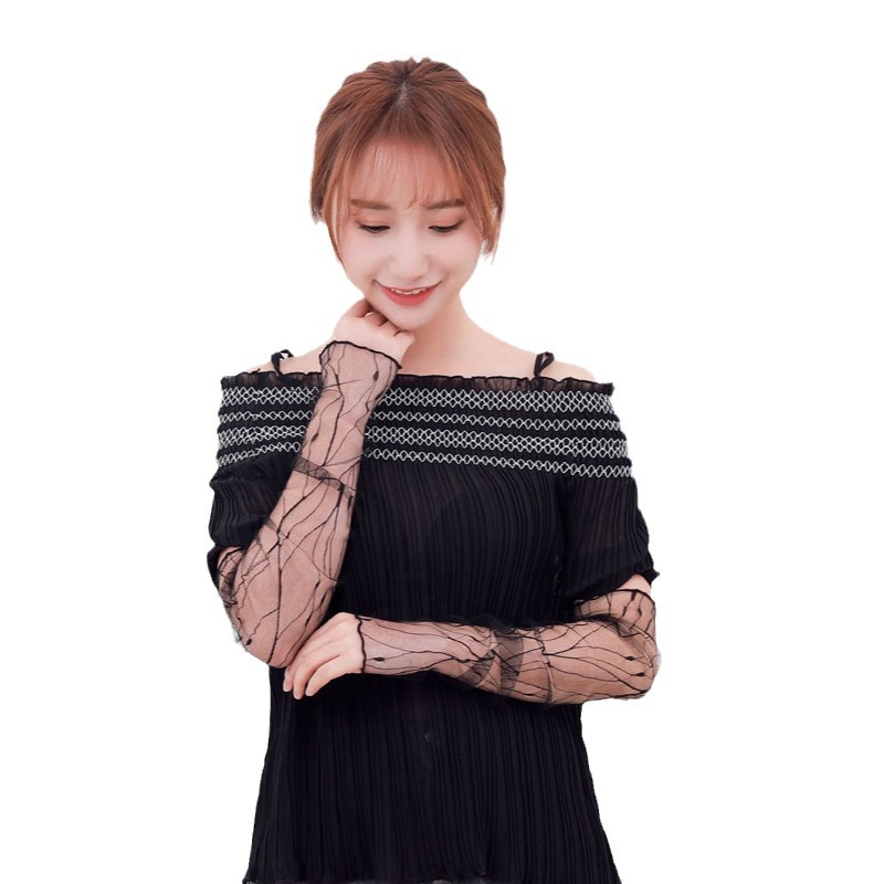 Elegant and elegant sleeve, mesh half transparent sexy fashion