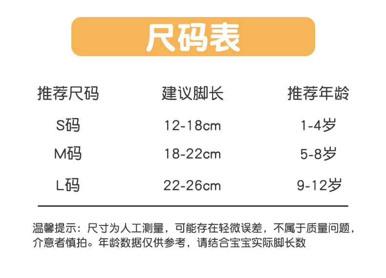 | m(5-8 years old, 18-22cm) | CN¥ 0.0 | 1000 pair available |