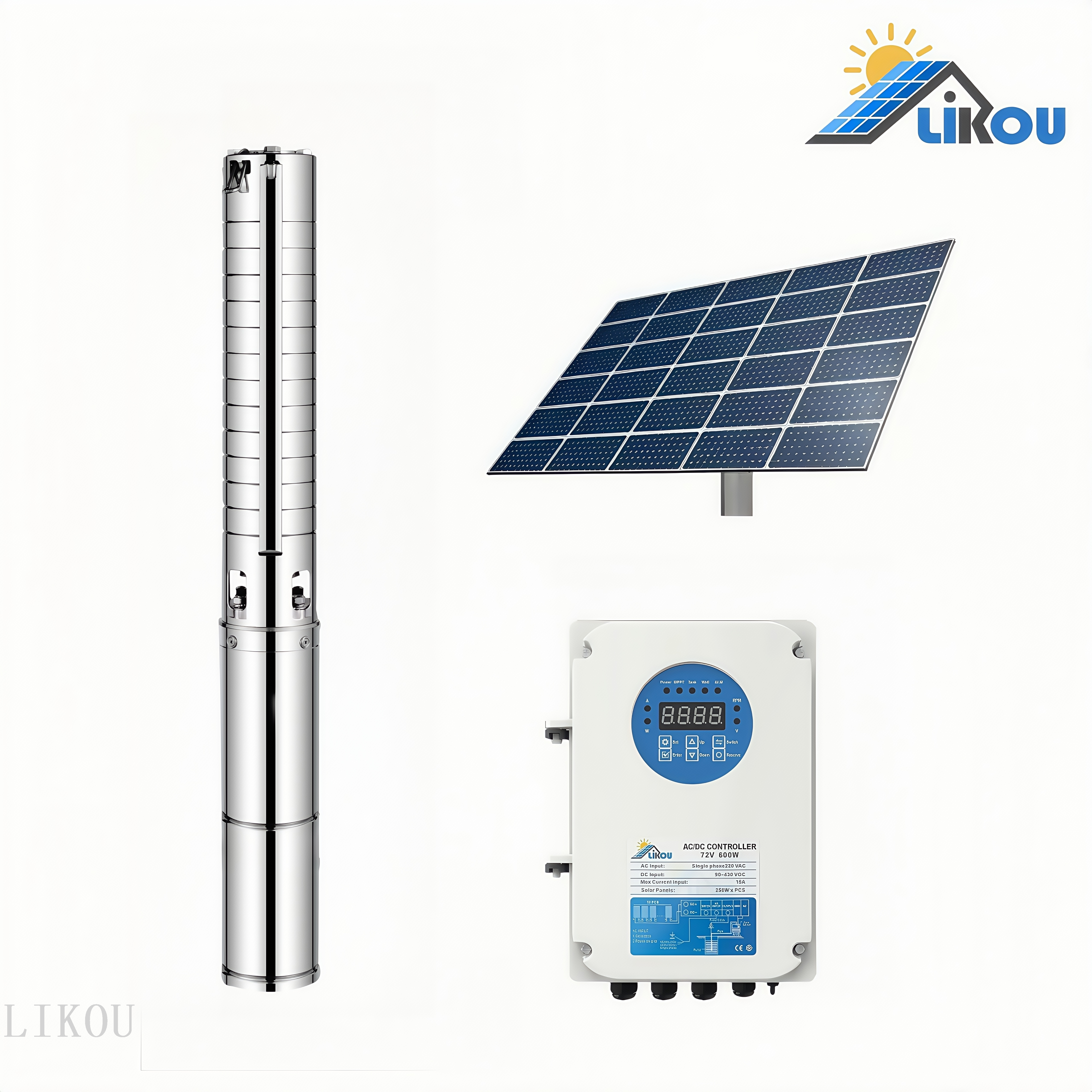 4-inch solar-powered water pump with an efficient stainless steel impeller for durability and corrosion resistance, extending service life; energy-saving design for significant reduction in energy consumption costs. Equipped with a white controller for easy operation and intelligent control. Solves the challenges of water scarcity in remote areas without electricity, using green energy for environmental protection and energy saving. ISO certified.Certification, quality assurance. Make clean water sources accessible, bringing convenience and hope to families and agriculture.