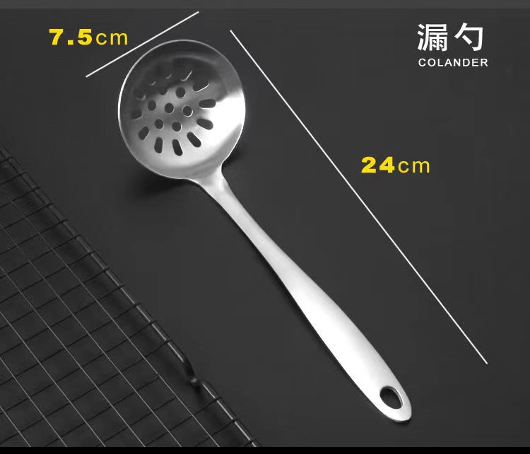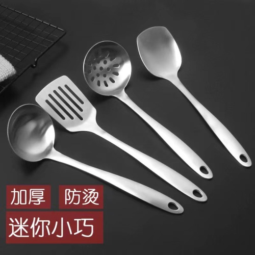 [short handle] 201 stainless steel short handle kitchenware thickened pot spatula soup spoon and strainer porridge spoon set kitchen supplies