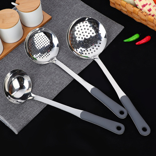 [gray silicone handle] 201 stainless steel modern simple multi-specification thickened and anti-scald polished kitchen supplies