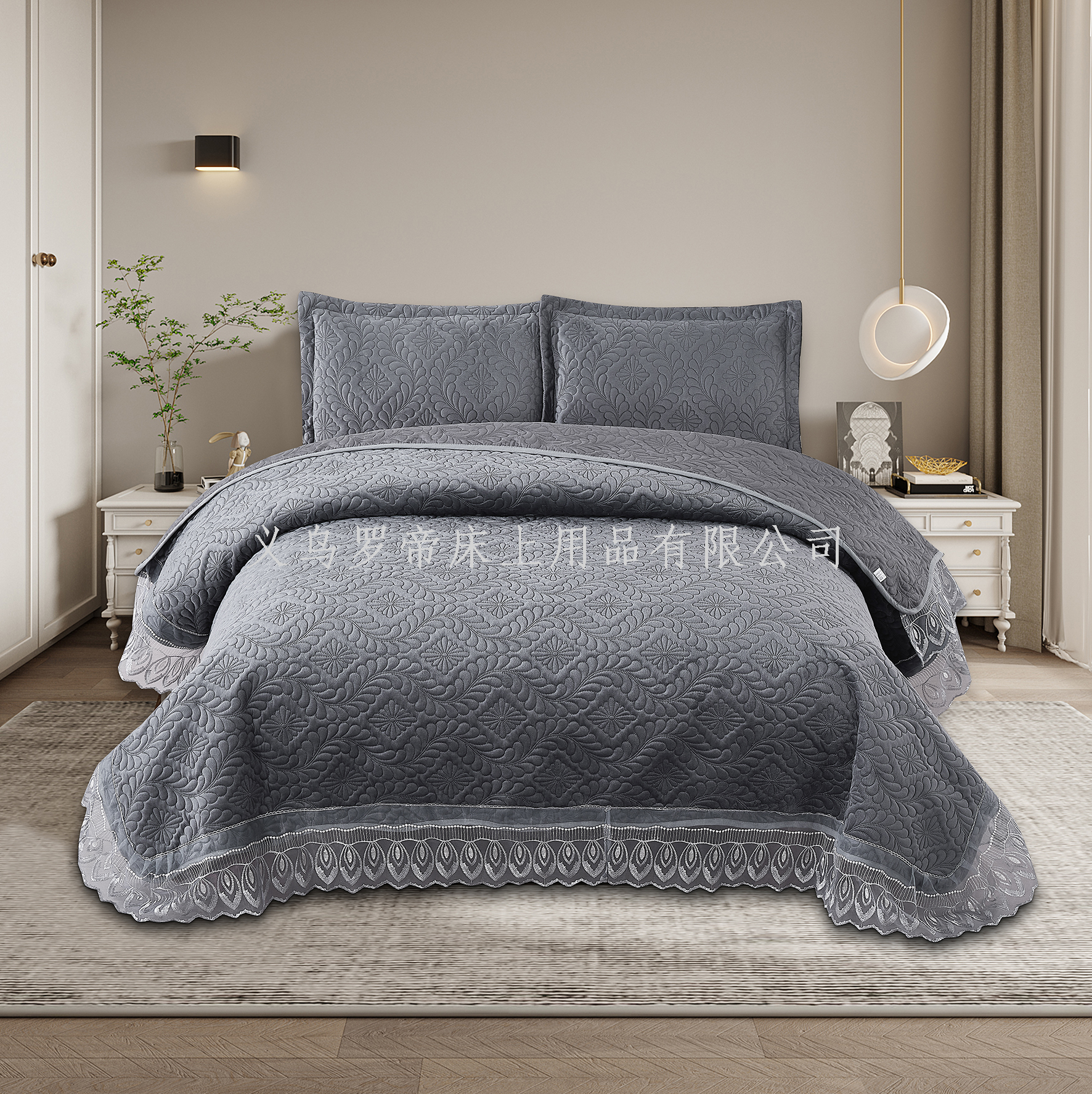 foreign trade quiltedtextiles cross-border bed sheet bedding three-piece washable double-sided bedspread 中文版