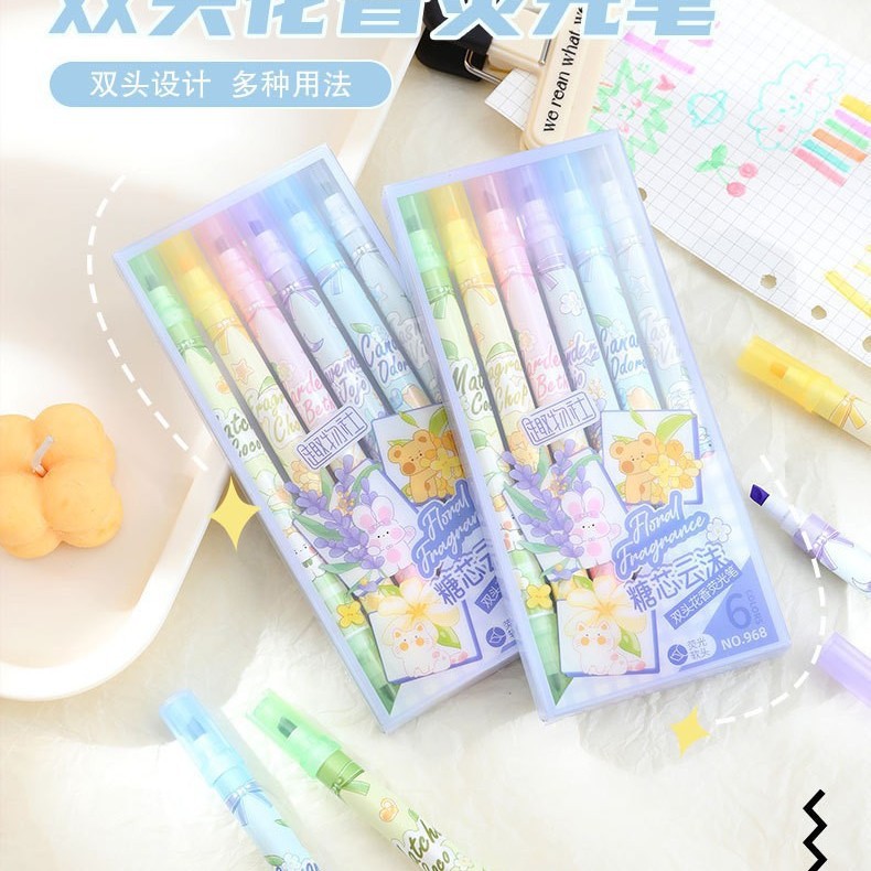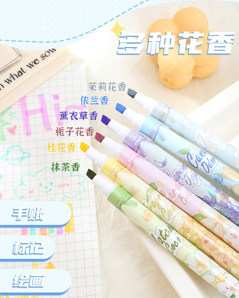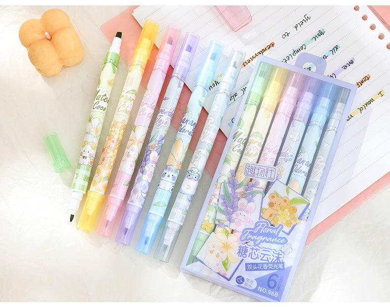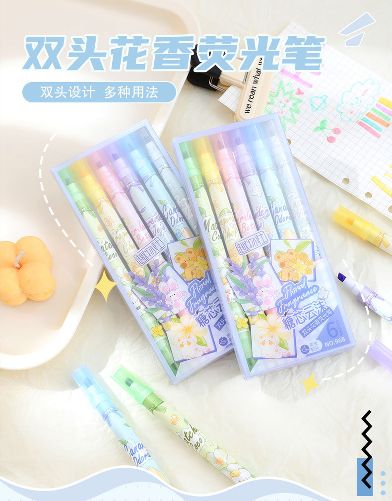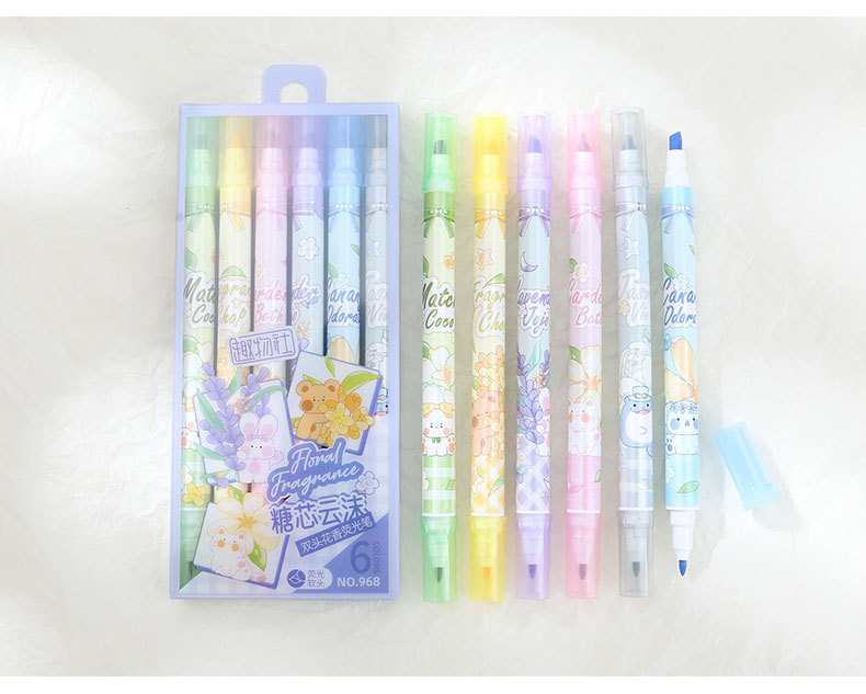Bilateral flower fragrance fluorescent pen fragrance painting brush children stationery gifts double line graffiti marking painting pen highlights the key points