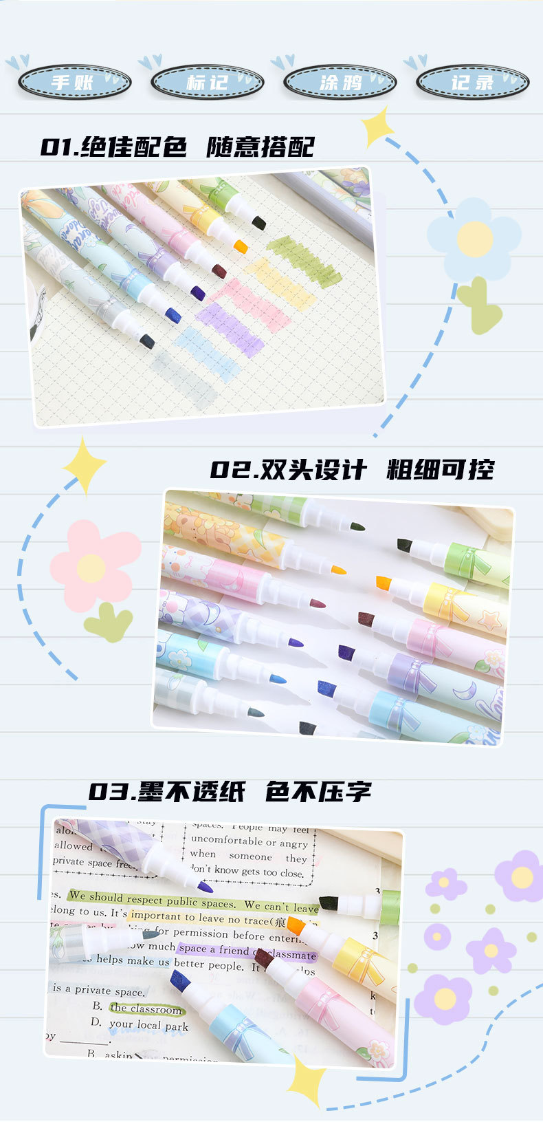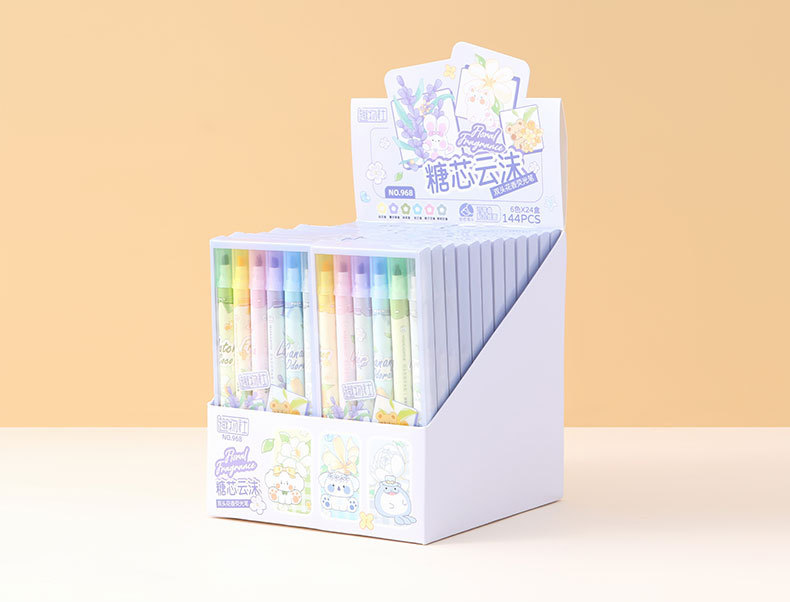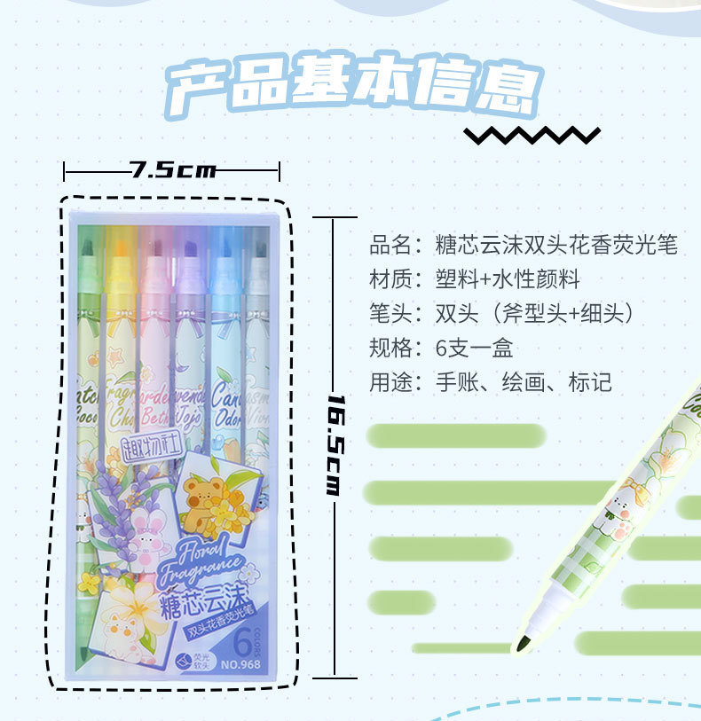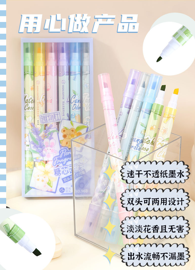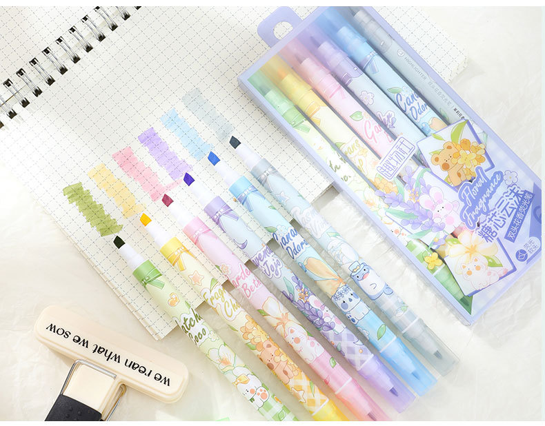 Bilateral flower fragrance fluorescent pen fragrance painting brush children stationery gifts double line graffiti marking painting pen highlights the key points