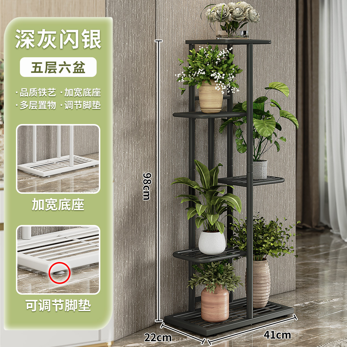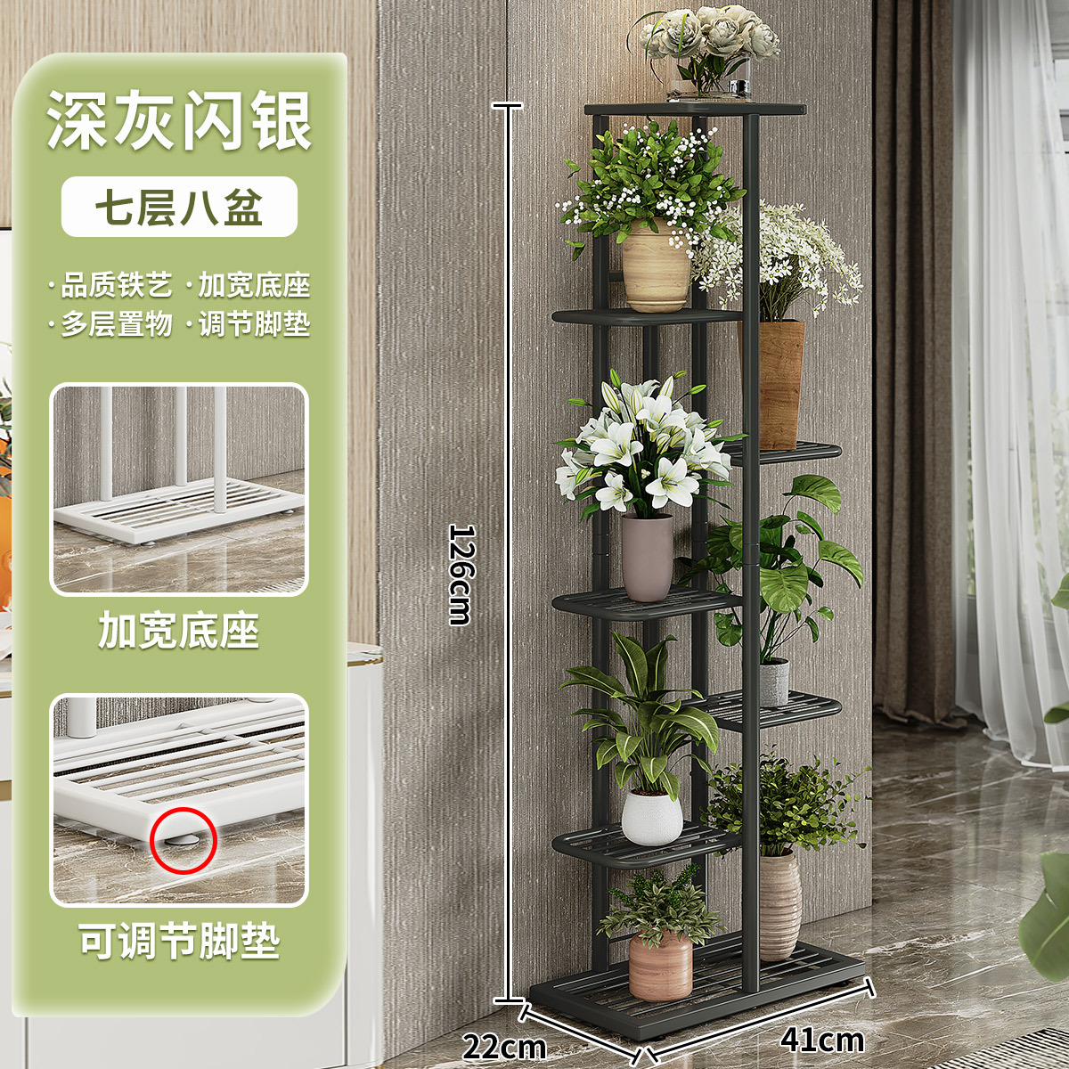 6-layer 7 pots [dark gray sparkle silver]]