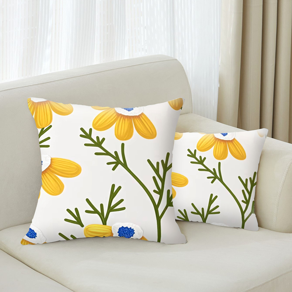 yellow flower cushion living room bay window sofa pillow 中文版