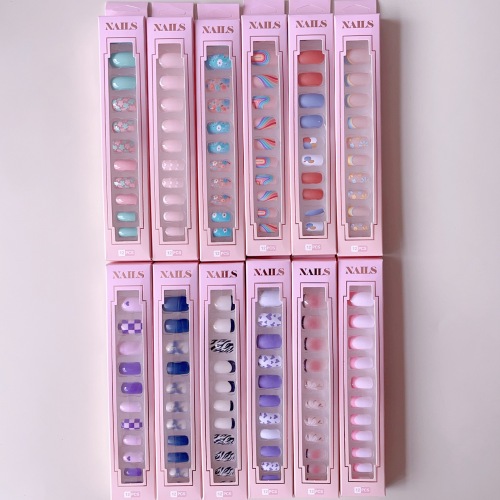 foreign trade medium european square wearable manicure 12 pieces boxed chessboard grid flower love wear nail a variety of nail tip 中文版