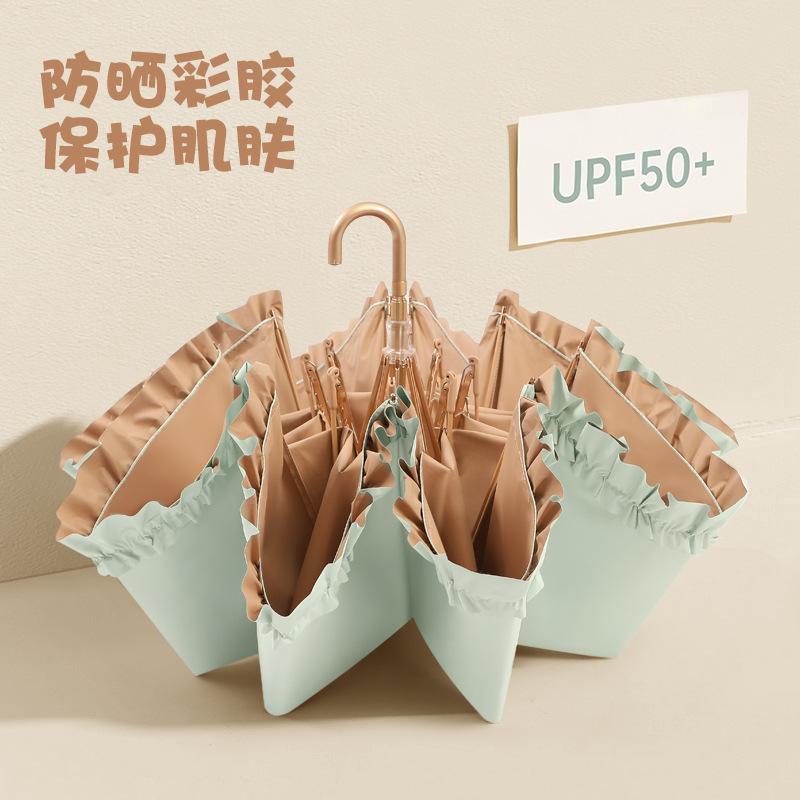 three fold small gold hook color plastic solid color lace umbrella buggy bag packaging -- green tea latte