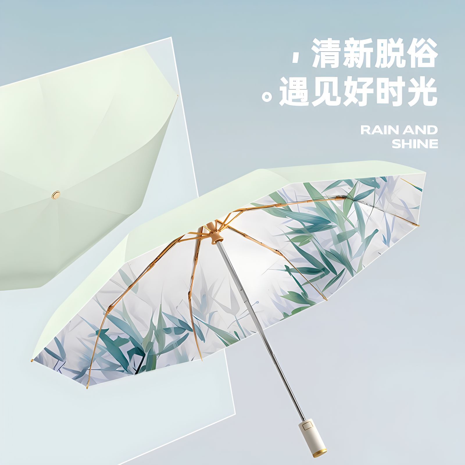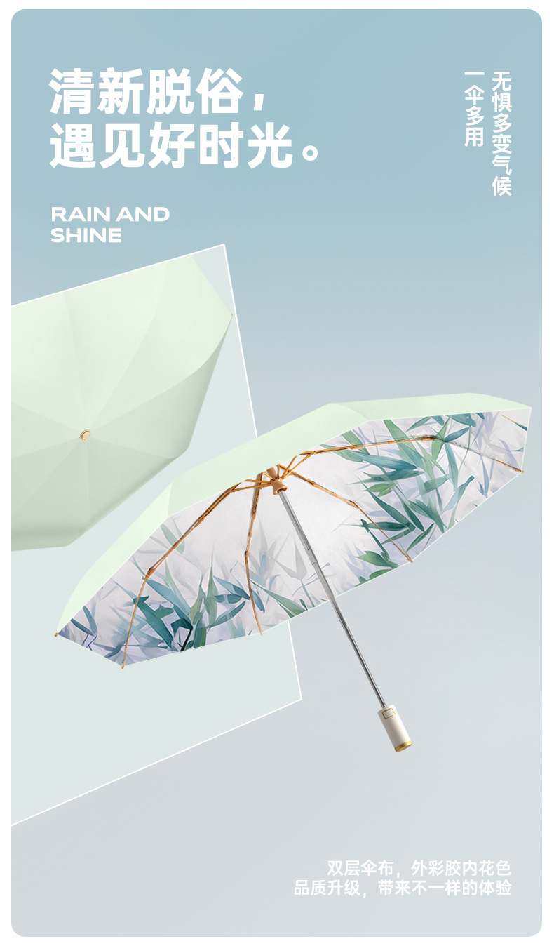 triple automatic umbrella double-deck umbrella aluminum alloy skeleton-golden silk bamboo stone